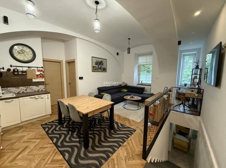 PRODAJA 3-SOBNEGA STANOVANJA Z DVEMA VHODOMA V SRCU MARIBORA| Mladinska ulica 6, 2000 Maribor Prodajamo stanovanje (adaptacija 2023) z neto površino 78,8 m2, v zgodovinski stavbi iz leta 1873. Stanovanje je popolnoma opremljeno in vseljivo. Razprostira se v dveh etažah in ima dva vhoda – zgornji in spodnji. Vsak prostor je zasnovan tako, da je maksimalno izkoriščen in funkcionalen, brez izgubljenih kvadratov. Razporeditev prostorov: Zgornja etaža (vhodna raven): predsoba, kuhinja z jedilnico, dnevna soba, kabinet, kopalnica, spalnica. Spodnja etaža: kotiček za branje, dodatna spalnica z počivalnikom-manjša omarica/odlagalni prostor, pisalna miza, garderobna soba. Ogrevanje ja urejeno na lastno plinsko peč. Stanovanje ponuja edinstveno kombinacijo prostornosti, karakterja in sodobne funkcionalnosti.Fotografije težko prikažejo, kako prijetno in lepo je v resnici, zato ste toplo vabljeni na ogled. Dodatna prednost:Stanovanje je lahko vaš novi dom, hkrati pa tudi odlična investicija. Trenutno sta 2 ločeni sobi, 1.spalnica - 2postelji (2 študenta) , 2.spalnica( večja z zakonsko posteljo) se zlahka spremeni v 2-3 posamezne postelje, lahko tudi garderboni del dodatna postelja. Z manjšim preurejanjem lahko pridobite prostor za do 6 študentov ali dijakov – kar je zaradi bližine šol in fakultet še posebej privlačno. Prednosti lokacije & stavbe: Naslov: Mladinska ulica 6, Maribor — v samem središču, v ulici, ki povezuje centralno mestno jedro s četrtjo Koroška vrata. Stavba ima značilen arhitekturni značaj in ustvarja edinstven ambient. V neposredni bližini je park – idealen za sprehode, družine z otroki ali preprosto kot zelena oaza miru v mestu. V bližini se nahajajo tudi izobraževalne ustanove in kulturne točke (npr. Konservatorij za glasbo in balet Maribor). Dostop do mestnih storitev, javnega prevoza in infrastrukture je zelo dober. Pokličite za ogled/ 041260667 ... Pokaži številko