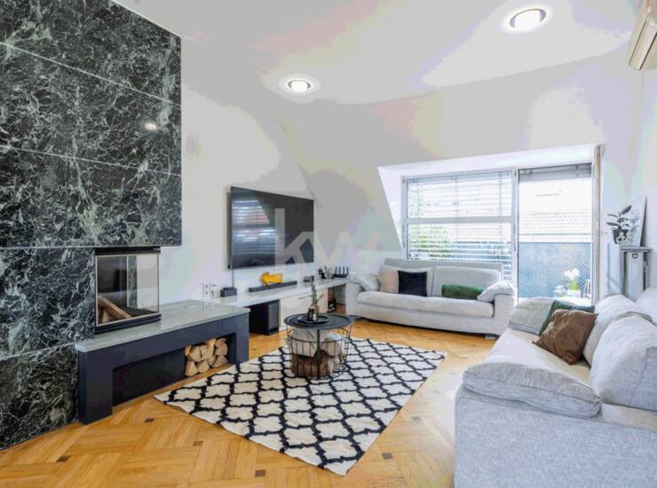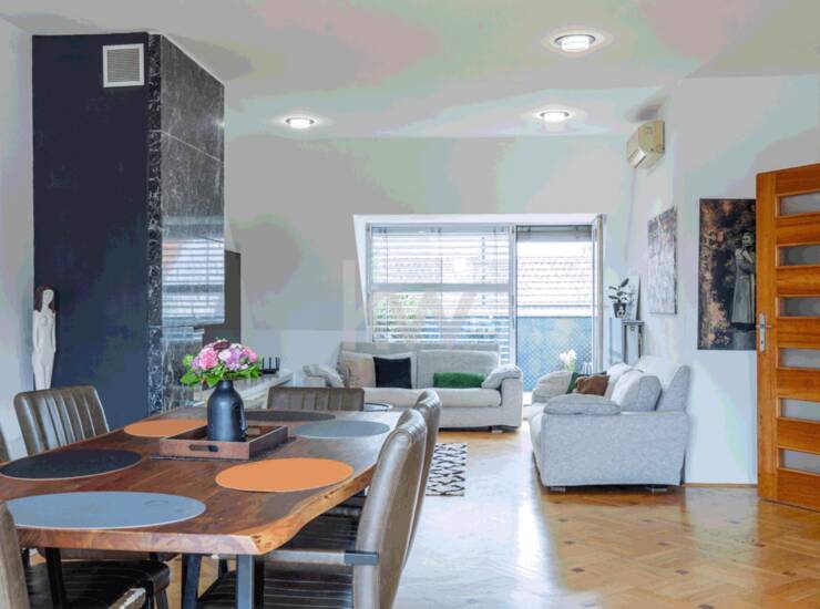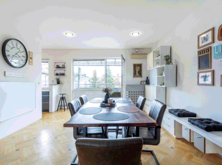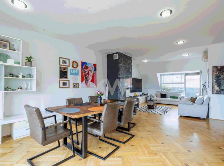 čudovito in sodobno opremljeno 5-sobno stanovanje-penthouse v samem centru Maribora. Stanovanje se nahaja v četrtem nadstropju (4/4) večstanovanjske stavbe in obsega 166,9 m². Ima 5 večjih sob, od tega tri spalnice in je idealno za večjo družino, poslovneže, mlajši par, manjšo družino itd. Stanovanje je bilo narejeno v letu 2009 na vrhu večstanovanjskega objekta, zgrajenega v letu 1960, kateremu je bila v letu 2003 obnovljena streha, istega leta se je obnovila tudi fasada. Objekt se nahaja v staromeščanskem predelu mesta Maribor in je obdan s staromeščanskimi zgradbami. Stanovanje je nastalo z združitvijo dveh stanovanj in ima dve kopalnici in dva stranišča, zato je primerno tudi za 2 manjši družini ali kombinacijo staršev in otrok.