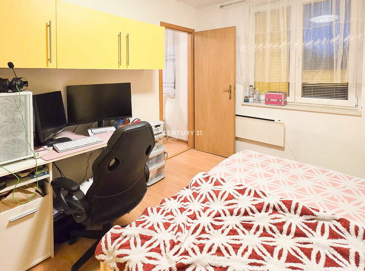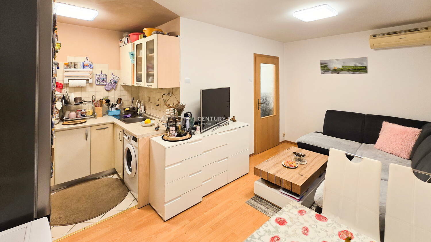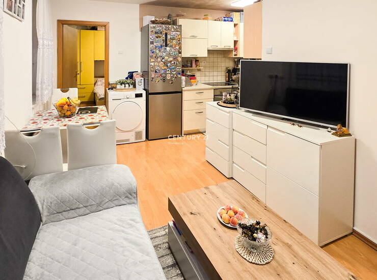 PRODAMO SIMPATIČNO OPREMLJENO ENOSOBNO STANOVANJE NA TEZNU V prodaji imamo enosobno stanovanje, ki se nahaja v tretjem nadstropju večstanovanjske stavbe brez dvigala. Skupna površina stanovanja znaša 37,1 m2. Stanovanje je bilo leta 2023 adaptirano, kar predstavlja pomembno prednost za bodočega kupca, saj omogoča takojšnjo selitev brez dodatnih vlaganj. Parkiranje je možno pred blokom ali na parkirišču čez cesto bloka. Stanovanje je kljub majhnosti funkcionalno zasnovano in je optimalno za udobno bivanje zaposlenega posameznika ali mladi par. Pripada mu tudi kletna shramba v izmeri 2,4 m2, kar zagotavlja dodaten prostor za shranjevanje. Ogrevanje je urejeno na elektriko z individualno regulacijo porabe in s tem večji nadzor nad stroški. V medetažah bloka so balkoni za skupno rabo in služijo v glavnem za sušenje perila. Stenske obloge- opleski pastelnih barv; talne obloge keramika in laminat; okna so PVC 2 slojna termopanska zasteklitev. Lokacija stanovanja je zelo ugodna in ponuja dobro izhodišče za vsakodnevne opravke ter hiter dostop do vseh pomembnih storitev v okolici. Stanovanje je vpisano v zemljiško knjigo, prosto bremen. oprema v stanovanju ostaja kot je vidno na fotografijah, razen pralnega stroja, hladilnika in TV ter osebnih predmetov. Za več informacij in dogovor za termin ogleda , nas kontaktirate. KONČNA CENA je stvar dogovora z resnim kupcem.