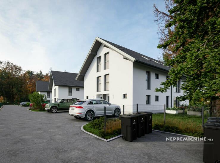 Okolica bo urejena, s tlakovanimi pohodnimi in povoznimi površinami ter parkirišči., do vselitve manjka še izdelava nadometnih instalacij, položitev talnih oblog (parket, keramika) izdelava kopalnic, montaža notranjih vrat in namestitev toplotne črpalke