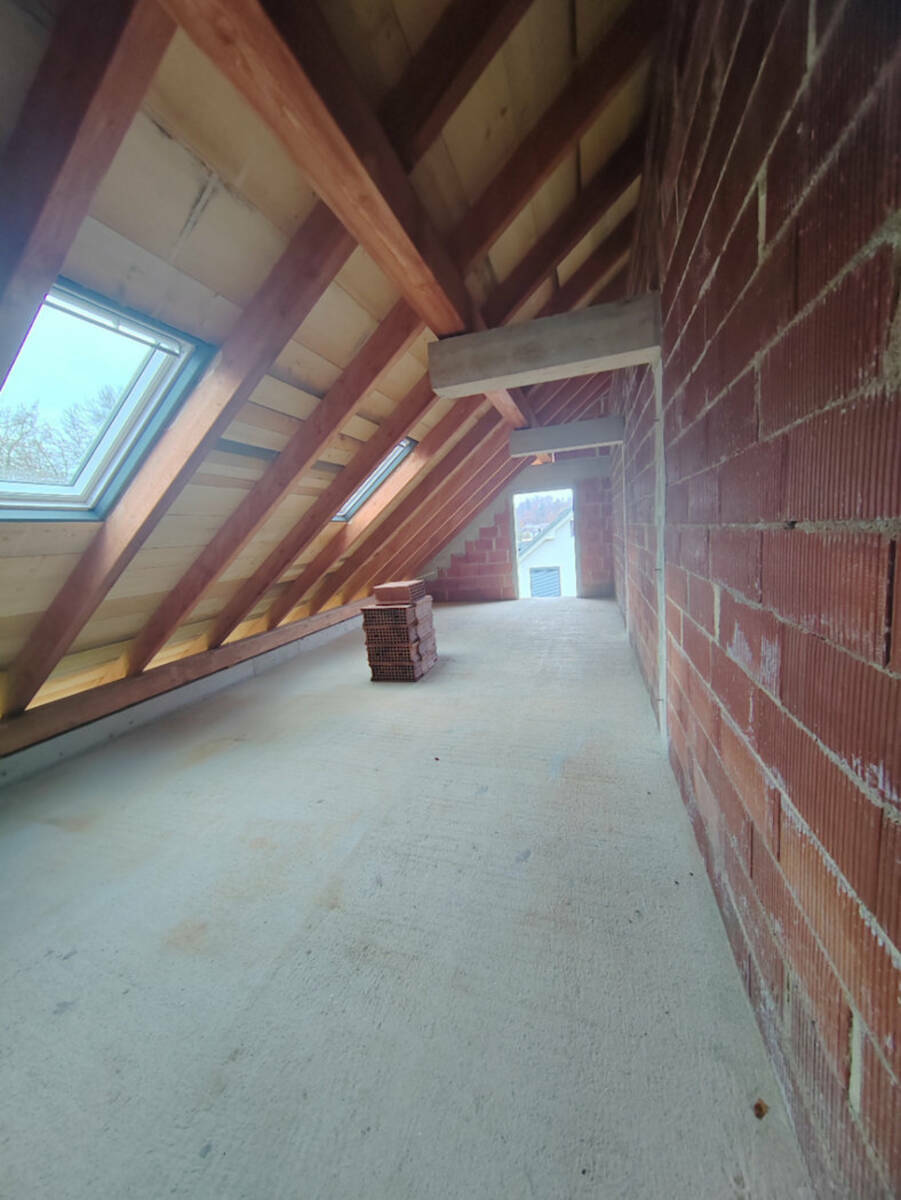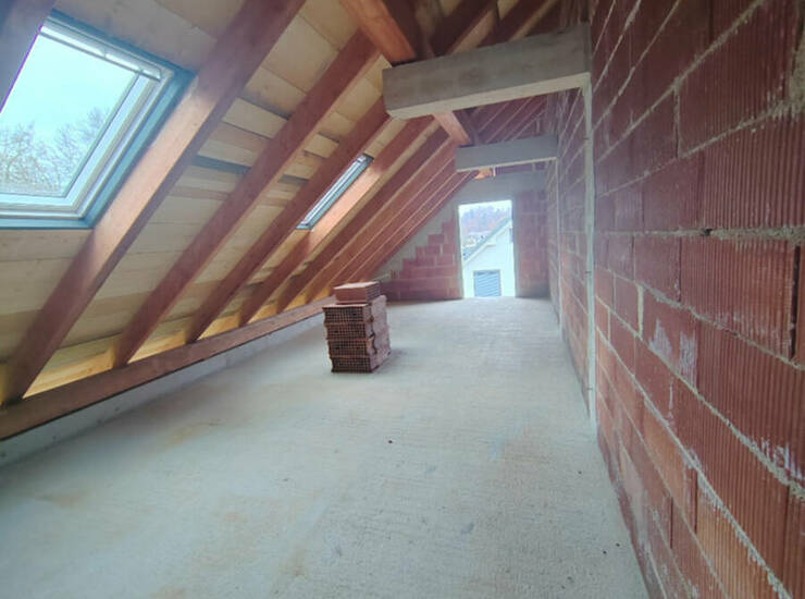 Mansarda: večja soba – spalnica 15,4 m² ter večnamenski prostor 38 m², ki omogoča ureditev dodatnih sob, domače pisarne, fitnesa…