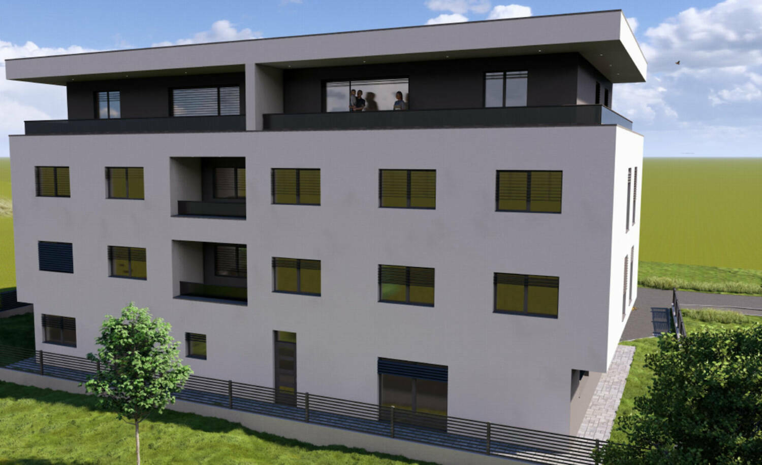 Večstanovanjski objekt bo z 8. bivalnimi enotami v prvem, drugem in tretjem nadstropju, v pritličju pa bodo trije poslovni prostori.