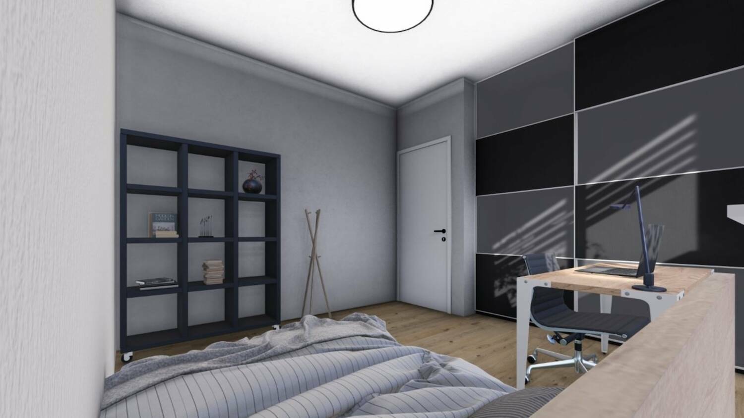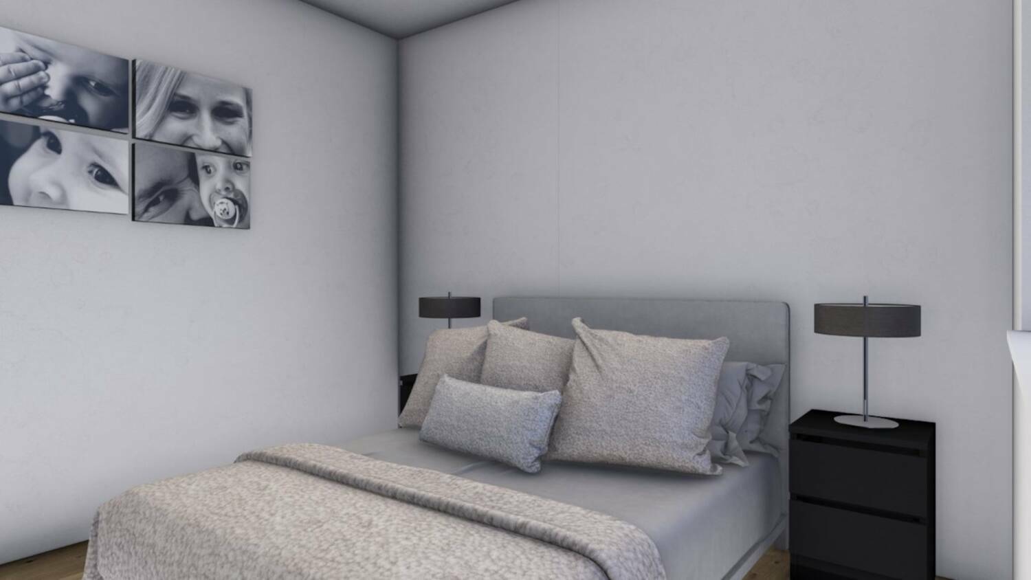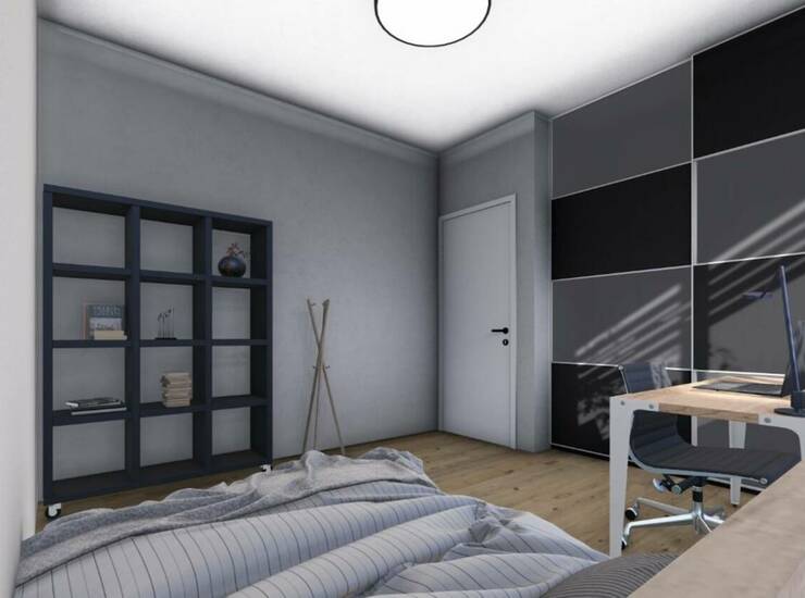 Oglaševano 3. sobno stanovanje - tip A se nahaja v 1 nadstropju ( stanov. štev. 1 ) in v 2. nadstropju ( stanov. štev. 4). V stanovanje se vstopi v predprostor, iz katerega je vhod v shrambo, večji osrednji prostor,