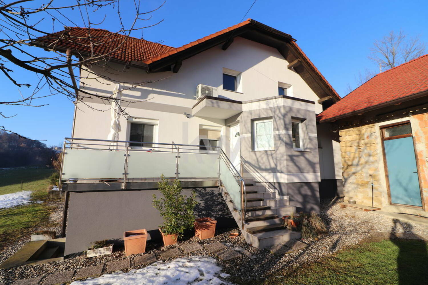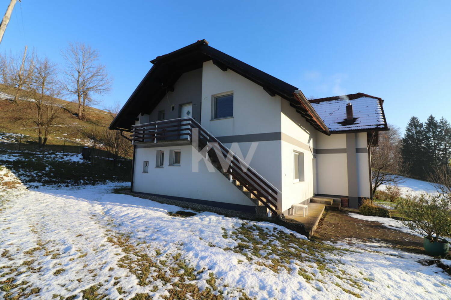 Ob hiši je zemljišče v velikosti 22.315 m2 in je malenkost pod, naklonom. Hiša je na čudoviti sončni lokaciji in na, samem.