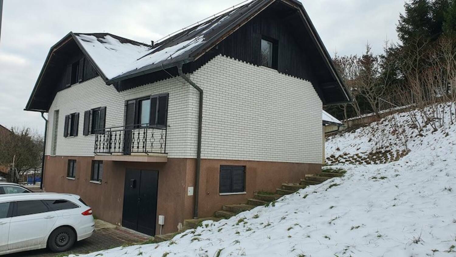 Stanovanjska hiša ima tri etaže: klet, pritličje in nadstropje, ki je deloma mansardno. Nahaja se v strnjenem naselju v Pesnica pri Mariboru 64e. Ogrevanje je urejeno na kurilno olje, fasada je opečna. Hiša je potrebna celovite obnove.
