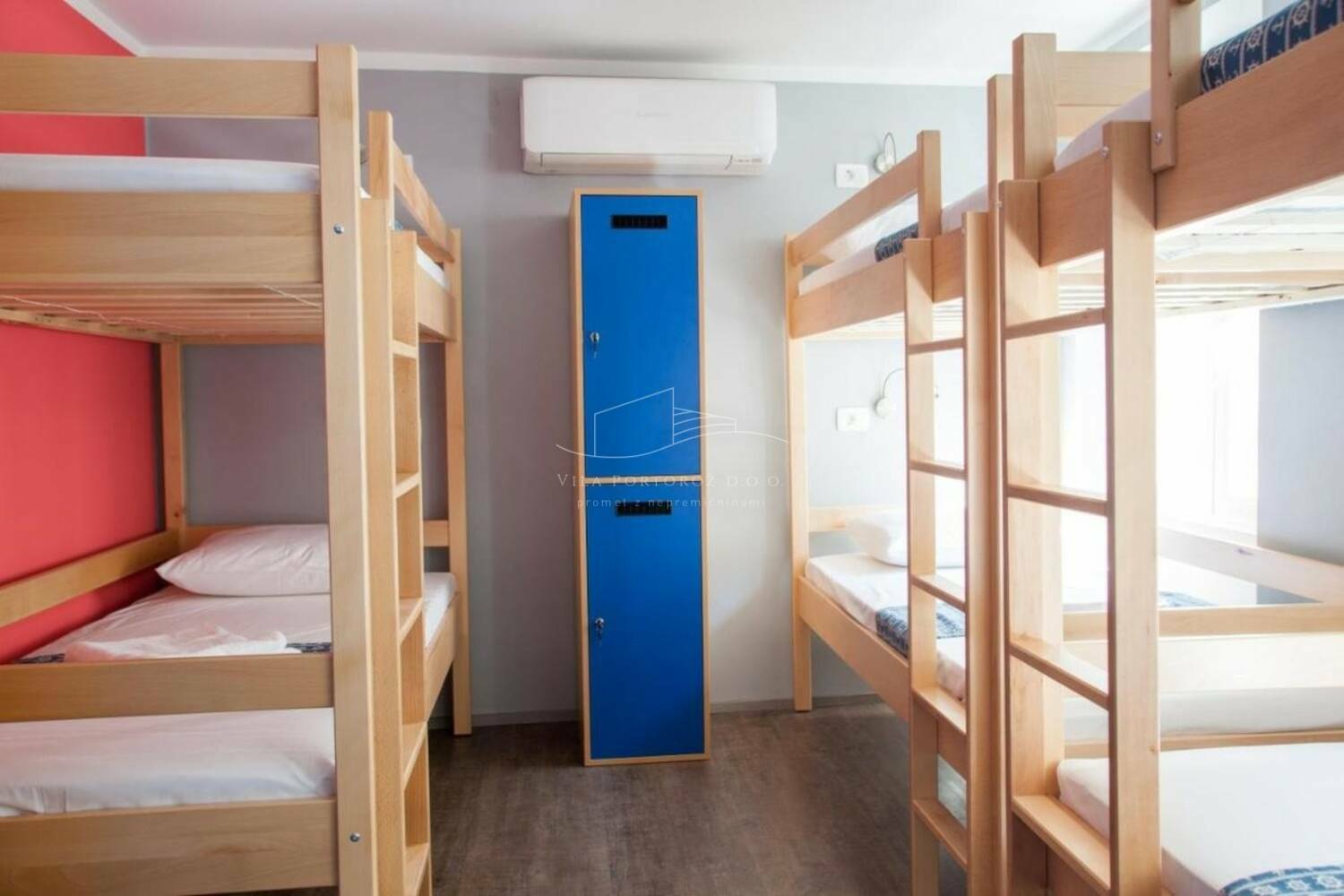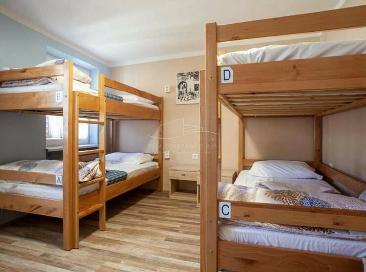 Hostel je sestavljen iz dveh objektov v izmeri 260m2 (P+1+2+M)