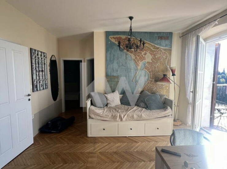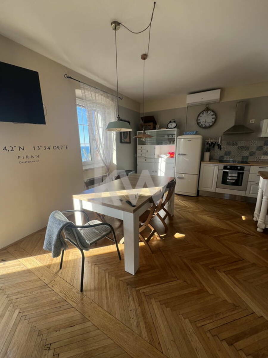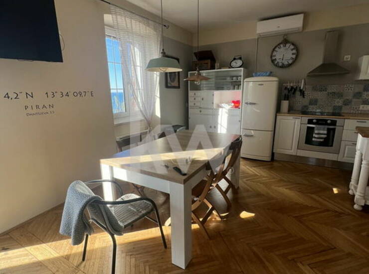 V 3-stanovanjski hiši, leta 2016 popolnoma renovirano in opremljeno 4-sobno stanovanje z lastnim vhodom in enim najlepših razgledov na Piranski zaliv.