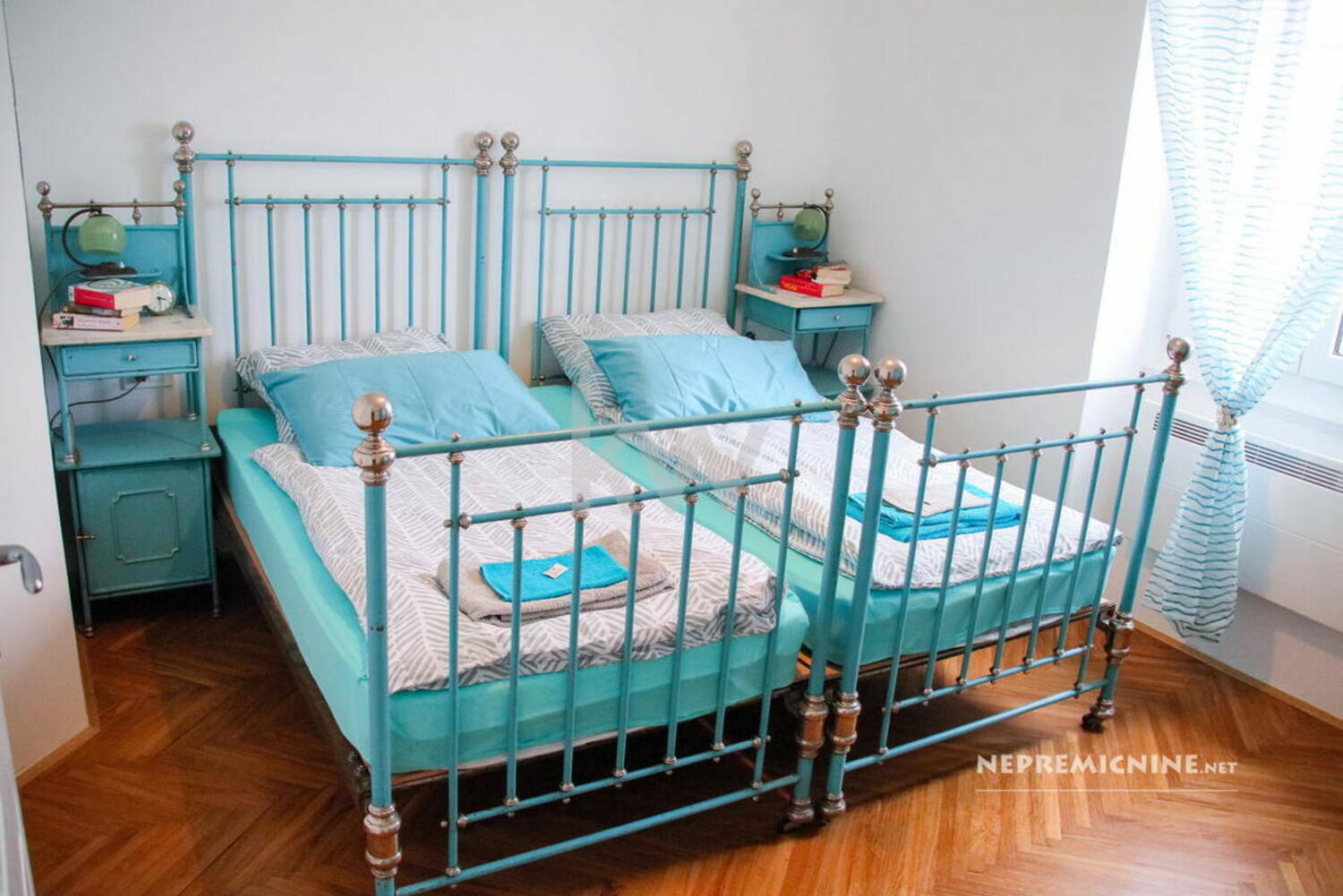 Večja enota (70 m²): 2 spalnici, prostoren kuhinjsko-dnevni prostor, ločena kopalnica in stranišče.