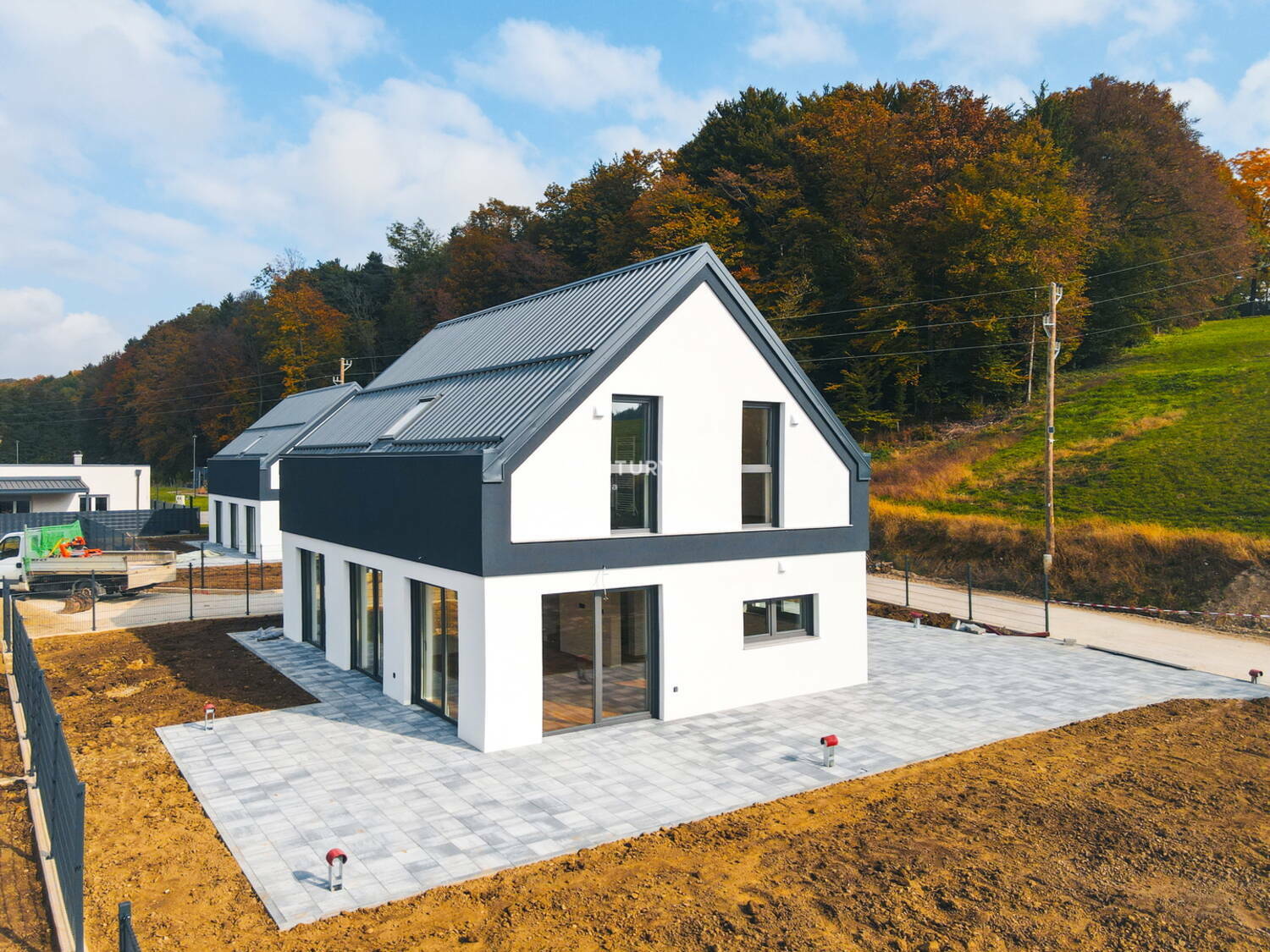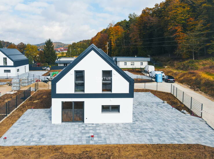 Ptuj, Grajena ***LE ŠE DVE ENOTI!*** Vseljivo takoj! Na mirni in sončni lokaciji je nastalo novo naselje 6ih samostojnih enostanovanjskih hiš. Objekti so klasične gradnje, etažnosti P+M, v skupni izmeri 125,2 m2. Razporeditev prostorov: Pritličje: predprostor/hodnik tehnični prostor kopalnica z wc-jem kabinet/pisarna kuhinja z jedilnico in dnevno sobo z izhodom na teraso Nadstropje: spalnica kopalnica z wc-jem 2 otroški sobi garderoba Tehnične podrobnosti: klasična opečna gradnja z armirano, hidro-izolirano betonsko ploščo, nadgradnja z opečnim zidakom Porotherm, predelne stene v mansardi ter stropi v suho-montažni izvedbi, leseno dvokapno ostrešje, deskano, s prezračevalnim slojem z letvami, krito s pločevino (z 3cm izolacijo), stavbno pohištvo v PVC izvedbi, s tri-slojno zasteklitvijo. Zunanje in notranje police iz naravnega kamna, senčila zunanje alu žaluzije na motorni pogon, vhodna vrata v PVC izvedbi, fasada je izvedena z 20 cm izolacije, ogrevanje v celoti talno, s toplotno črpalko. Nemeščena je klimatska naprava in lokalno prezračevanje v spalnih prostorih, talne obloge: v tehničnem prostoru in kopalnicah v keramiki, preostali prostori v gotovem parketu, priključki: voda, elektrika, kanalizacija, optika, lovilci olj na parkirnih mestih pred hišo, 5 m3 zalogovnik za meteorne vode ter 3 m3 ponikalnica, predinštalacija za alarmni sistem. Parcele so velikosti od 500 m2 do 569 m2, ravne, ograjene, delno tlakovane, delno bodo zatravljene. Oglaševana cena velja za objekt, izgrajen do faze "na ključ" s pridobljenim uporabnim dovoljenjem in hišno številko. V kolikor je nakup vezan na prodajo vaše nepremičnine, uredim tudi prodajo le-te ter poskrbim za varnost in uskladitev obeh kupoprodajnih poslov.