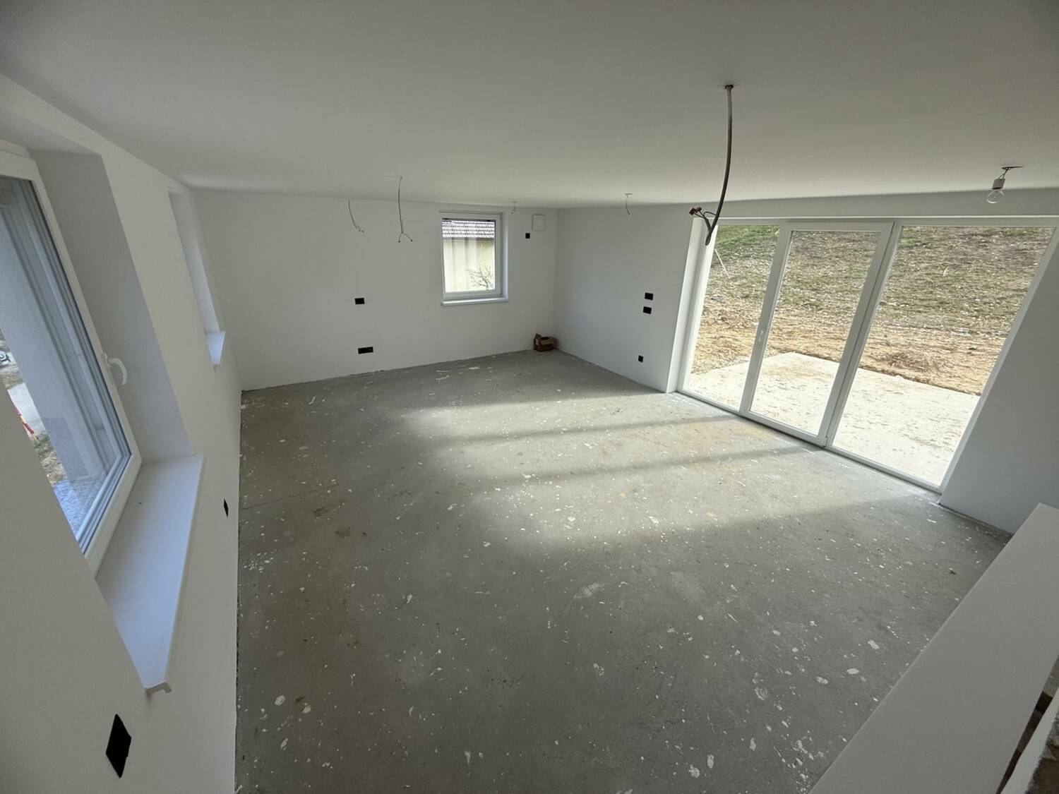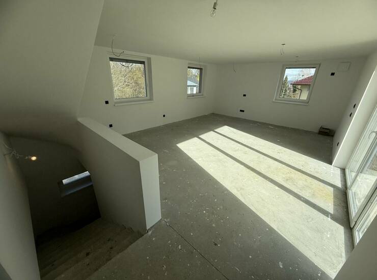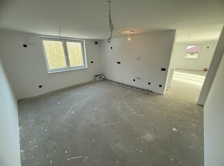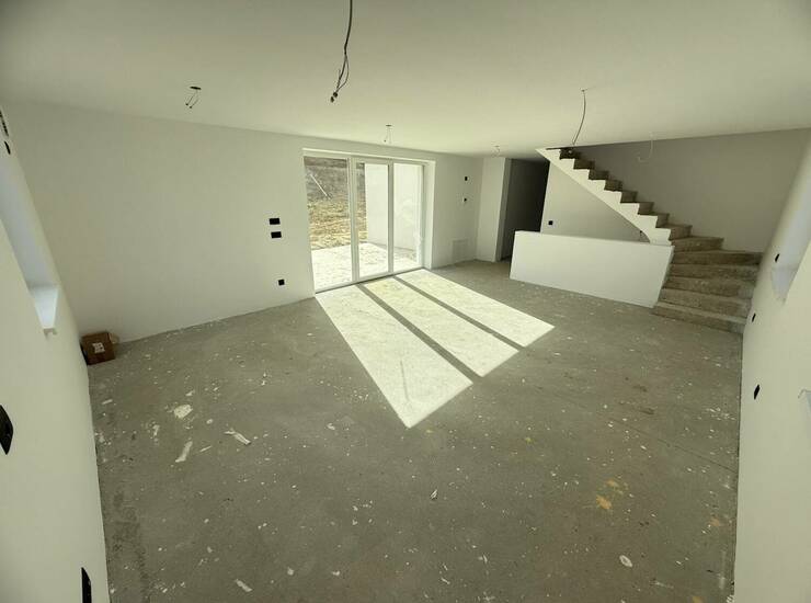 Hiša je v zaključni fazi gradnje, kjer so vse večje in ključne investicije že opravljene. Strešna kritina so pločevinasti paneli T40 s 3 cm izolacijo, izvedena fasada z 20 cm izolacije, PVC okna so tro slojna z žaluzijami ( v dnevnih prostorih elektro pogon ), bele barve s komarniki,protivlomna vhodna vrata antracit barve, senzorska razsvetljava pred vhodom, urejena okolica s posejano travo, utrjena terasa veličine 15,75 m2 z zunanjim priklopom za vodo, tlakovani parkirni prostori s predpripravo za električno polnilnico. Notranjost je pripravljena do faze polaganja talnih obrog in vrat z podboji, vgrajena in zagnana toplotna črpalka zrak/voda znamke Samsung, vgrajena stikala in vtičnice, zaključena pleskarska dela, vgradna tuš termostatska armatura, vgrajeni Geberit WC kotlički s tipko, vgrajeni lokalni rekuperatorji v vseh bivalnih prostorih, predinštalacija za omrežne povezave v vseh prostorih ter predinštalacije za klimatsko napravo. Po dogovoru s prodajalcem je možna tudi izvedba vseh zaključnih del.