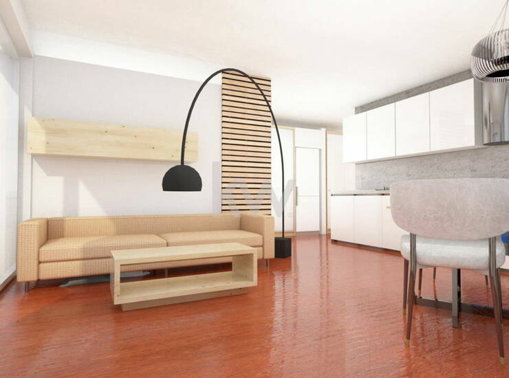 Stanovanje zajema: vhod 4,83 m2, dnevni prostor s kuhinjo in jedilnico 20,46 m2 z izhodom na ložo, spalnica 14,19 m2 z izhodom na ložo, kopalnica 6,91 m2, bivalno skupaj: 46,39 m², ostalo: loža: 9,65 m2, shramba v kletnem prostoru 3 m2, lastniško parkirno mesto v garaži.