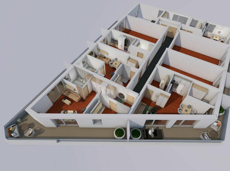Tukaj se razvija čudovita arhitekturno zasnovana soseska treh stanovanjskih objektov skupaj s pripadajočo parkirno površino z naborom 110 stanovanj različnih velikosti. Stanovanja so dimenzijsko prilagojena invalidnim in starejšim osebam, z možnostjo oskrbe in nege na domu, ter nudijo majhne stroške porabe s vgrajeno toplotno črpalko ter talnim ogrevanjem.