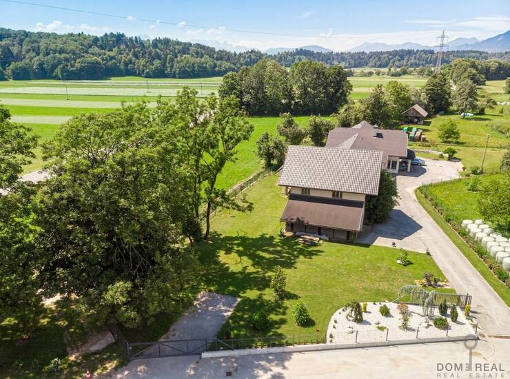 Naprodaj vam ponujamo poslovno-stanovanjski kompleks v idilični vasi Spodnji Otok, ki združuje udobje prostornega bivanja in odlične možnosti za poslovno dejavnost. Skupna bruto tlorisna površina kompleksa znaša 1.094 m², pripadajoče zemljišče pa obsega 10.011 m². Kompleks stoji na parcelah s številkami 531/1, 531/2, 531/3, 531/4, 532, 533 in 785/3, vse v katastrski občini 2153. Lokacija omogoča hiter dostop do avtoceste na relaciji Ljubljana–Bled, saj je priključek Brezje oddaljen le nekaj minut vožnje.