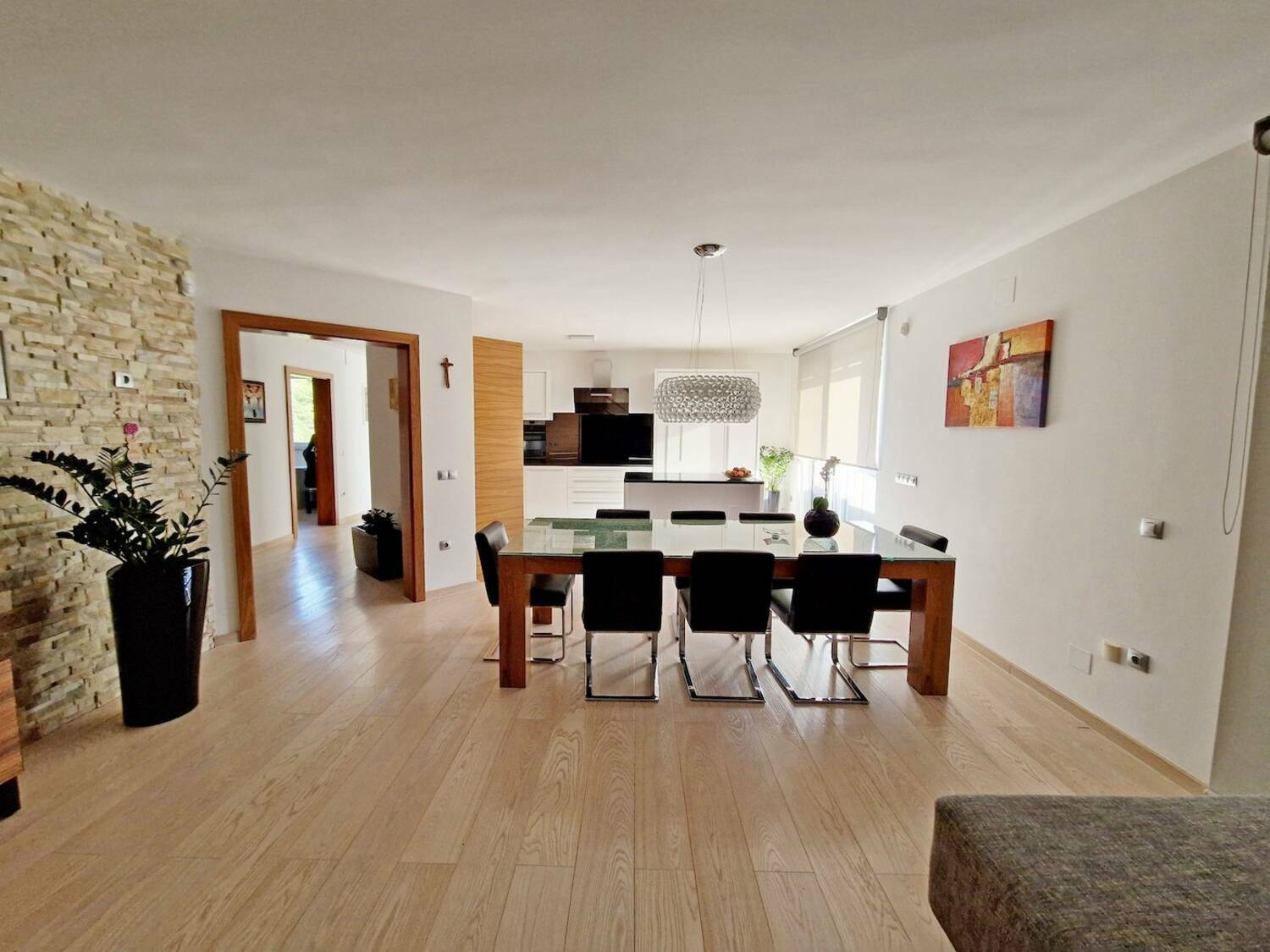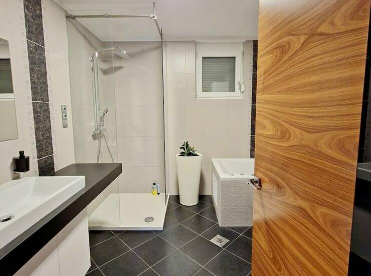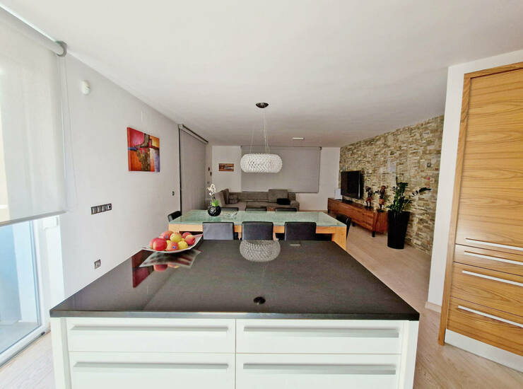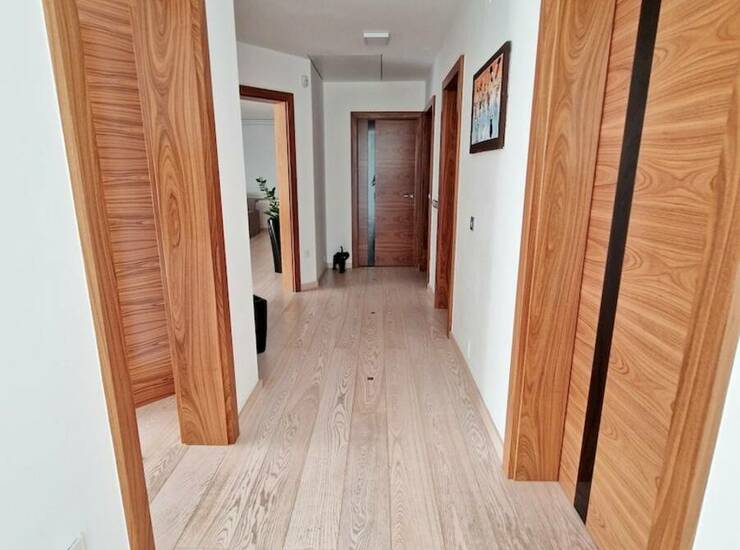 Popolnoma opremljeno stanovanje, svetlo in funkcionalno (neto uporabna kvadratura 114,1 m²): dnevna soba z jedilnico in kuhinjo, pokrita terasa, spalnica, otroška soba, kopalnica, sanitarije in hodnik.