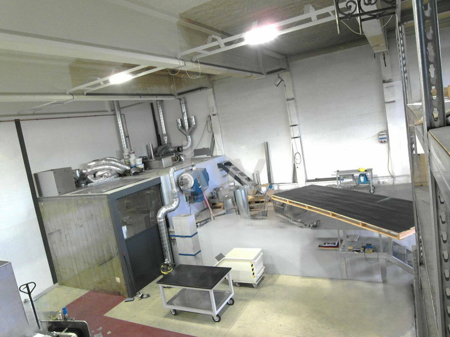 Sestavlja jo pisarniški del, sanitraije, čajna kuhinja in delavniški del z podestom, poglobljenim delom z protipožarno urejenim HEPA filtrom, podtlačno filtrirno brusilnico. Višina prostora: 5,6 m. Dim. dvižnih vhodnih vrat 4 m x 3 m.
