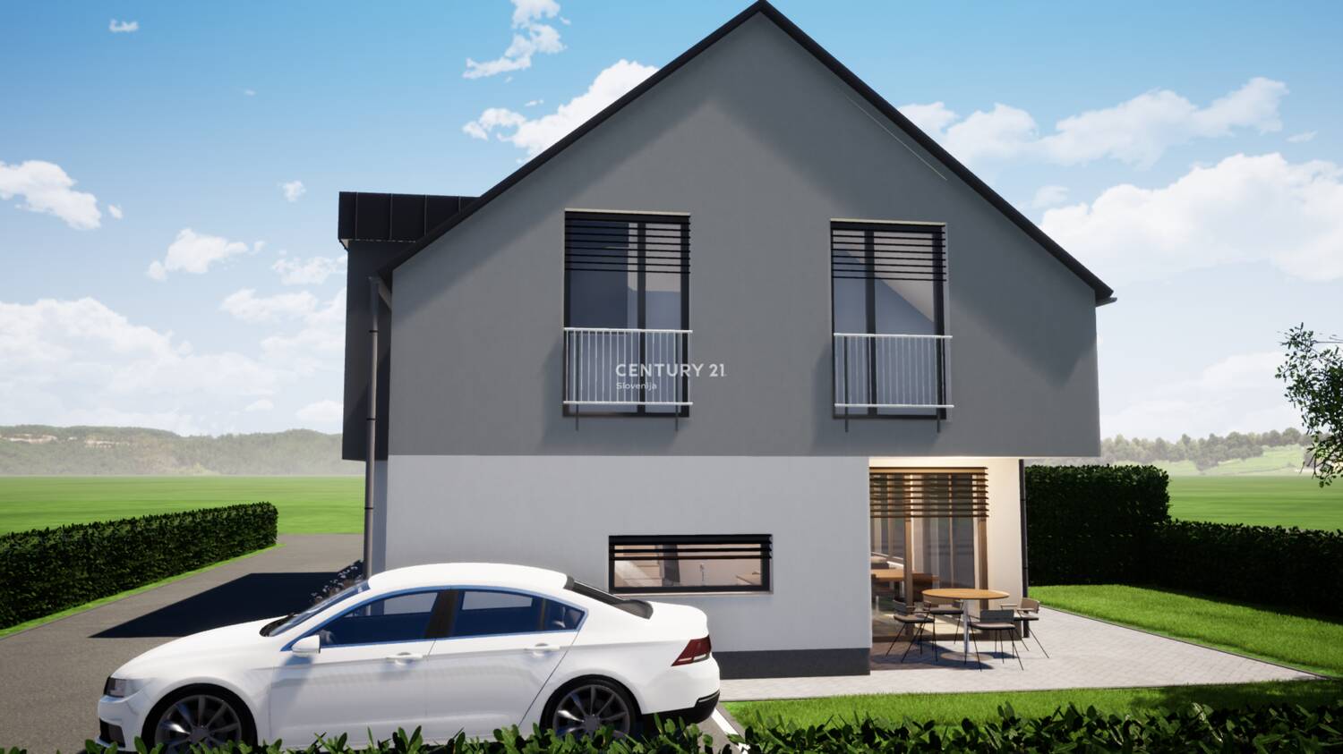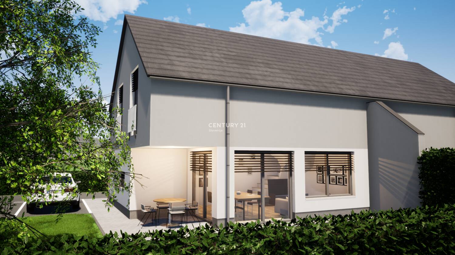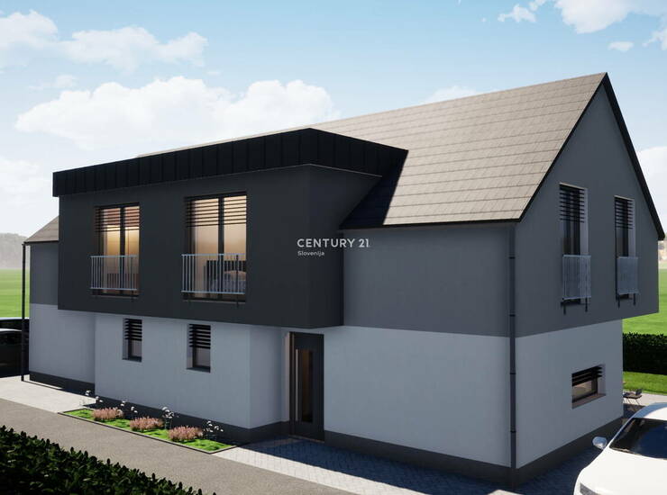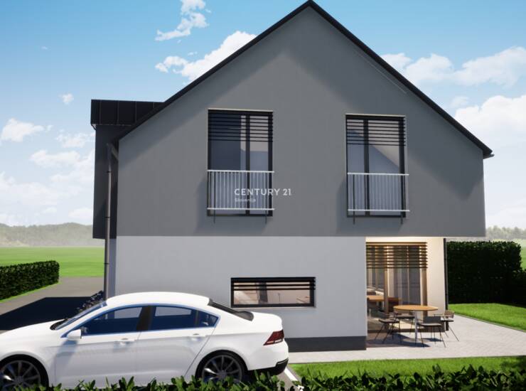 Novogradnja – moderen dvojček v Kresnici (občina Šentilj) Na mirni in urejeni lokaciji, le pet minut vožnje iz centra Šentilja, je na voljo dvostanovanjski objekt – enoti dvojčka, ki predstavlja odlično priložnost za vse, ki si želijo udobnega in sodobnega bivanja v naravnem okolju. Enoti se nahajata na koncu slepe ulice novejše stanovanjske soseske, kar omogoča vso potrebno zasebnost. PODATKI O NEPREMIČNINI Vrsta objekta: enoti dvojčka Stanje: prevzem konec 2025 Površina: 116 m2 bruto, od tega neto tlorisna površina 110,4 m2 Zemljišče: 1.086 m2 na enoto, urejena zunanja okolica Izvedba: Na ključ Enote so trenutno v izgradnji, kar kupcem omogoča, da še sodelujejo pri finalizaciji in izbiri finalnih materialov. TEHNIČNE ZNAČILNOSTI Ogrevanje: Toplotna črpalka Viesmann z talnim ogrevanjem Okna: 3-slojna Rehau PVC okna z varnostnim steklom Senčila: Kakovostna senčila Medle Fasada: 15 cm izolacija Streha: Tondach Saturn Kopalniška oprema: Kolpasan (tuš, WC, 2 umivalnika, predpriprava za kad) RAZPOREDITEV PROSTOROV Pritličje (50,1 m2 + 5,6 m2 terasa): Predprostor: 7,05 m2 Utility: 3,70 m2 WC: 2,20 m2 Kuhinja: 8,65 m2 Dnevna soba z jedilnico: 24,0 m2 Shramba: 4,5 m2 Pokrita terasa: 5,6 m2 Mansarda (60,3 m2): Hodnik s stopniščem: 8,7 m2 Kopalnica: 9,2 m2 Otroška soba 1: 14,7 m2 Otroška soba 2: 14,7 m2 Spalnica: 13,0 m2 Podrobnejši tloris in razporeditev prostorov je priložena med fotografijami oglasa. Lokacija Hiša se nahaja v osrčju narave, le 5km od centra Šentilja in neposredno ob Avstrijsko-slovenski meji. Do Gradca je približno 20 minut vožnje, do Maribora 15 minut. Zaradi bližine avtoceste, trgovin, šole in zdravstvenega doma je lokacija idealna tako za mlade družine kot tudi za avstrijske državljane, ki želijo bivati v mirnem okolju in hkrati ostati v neposredni bližini vse potrebne javne infrastrukture. V kolikor morate pred nakupom prodati vašo neprem