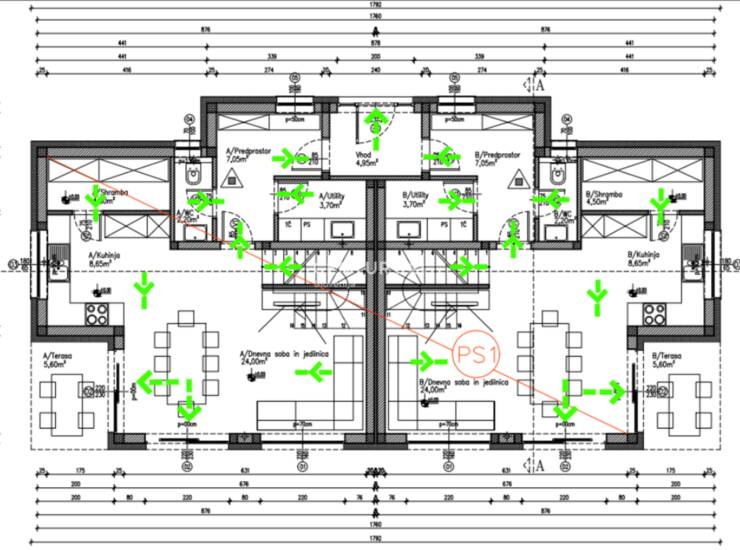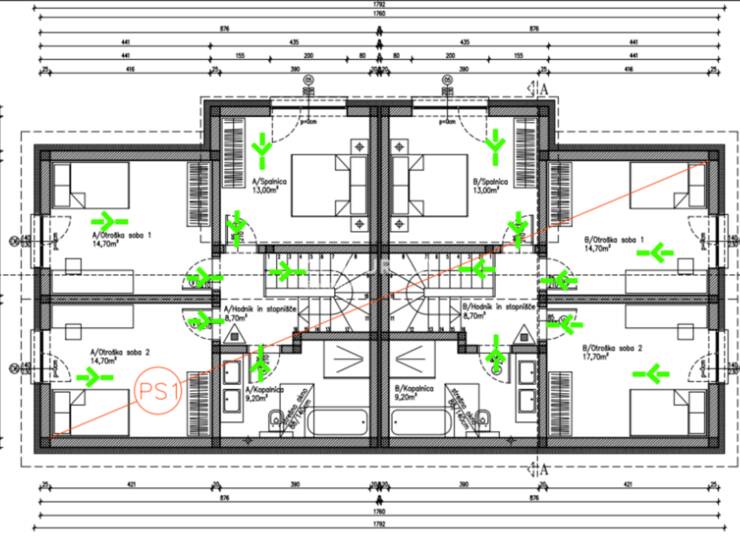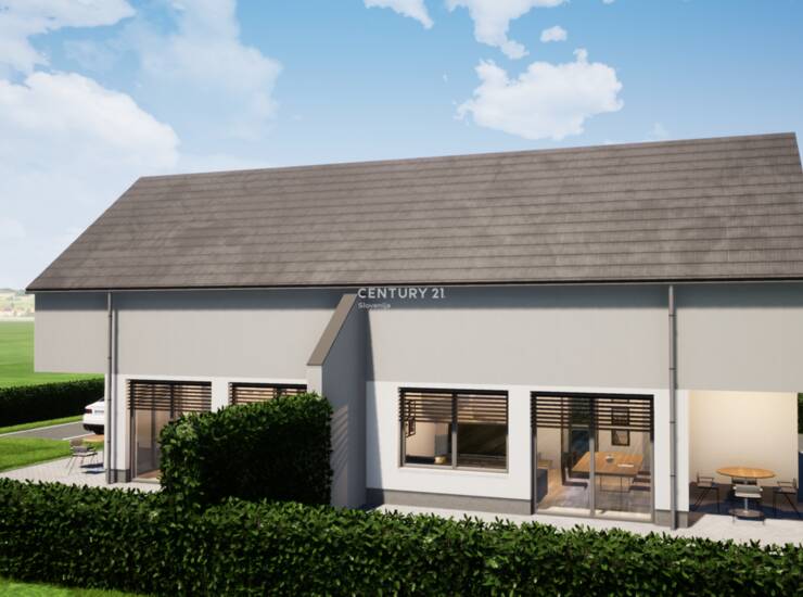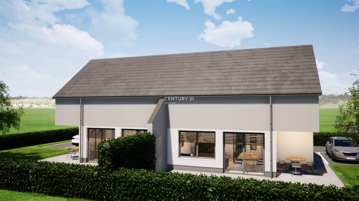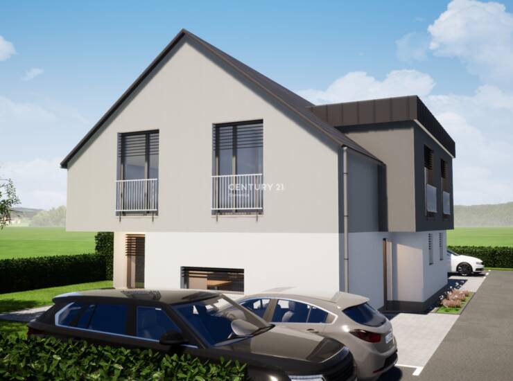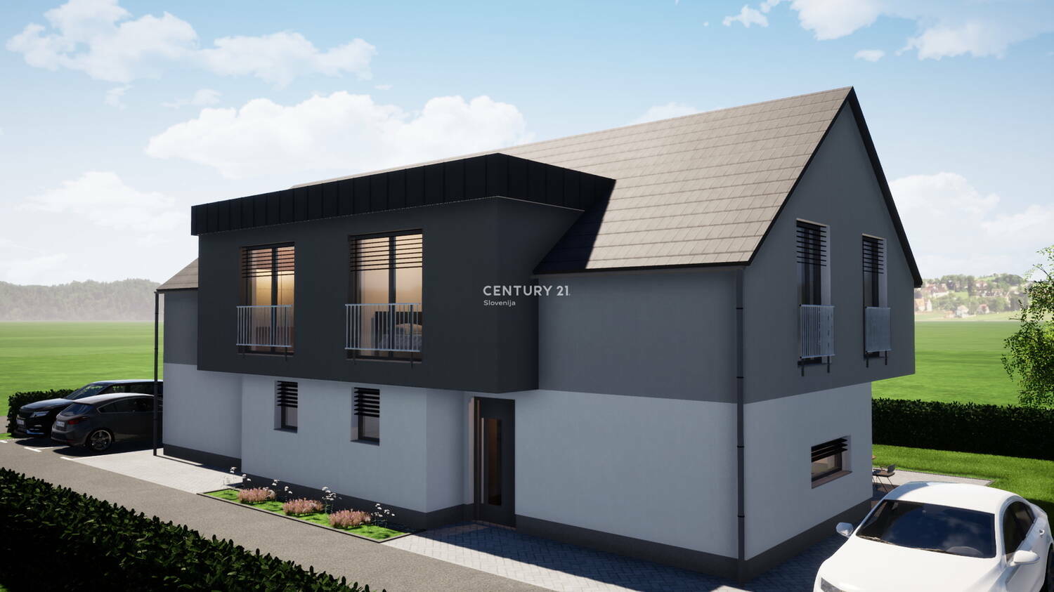 Novogradnja – moderen dvojček v Kresnici (občina Šentilj) Na mirni in urejeni lokaciji, le pet minut vožnje iz centra Šentilja, je na voljo dvostanovanjski objekt – enoti dvojčka, ki predstavlja odlično priložnost za vse, ki si želijo udobnega in sodobnega bivanja v naravnem okolju. Enoti se nahajata na koncu slepe ulice novejše stanovanjske soseske, kar omogoča vso potrebno zasebnost. PODATKI O NEPREMIČNINI Vrsta objekta: enoti dvojčka Stanje: prevzem konec 2025 Površina: 116 m2 bruto, od tega neto tlorisna površina 110,4 m2 Zemljišče: 1.086 m2 na enoto, urejena zunanja okolica Izvedba: Na ključ Enote so trenutno v izgradnji, kar kupcem omogoča, da še sodelujejo pri finalizaciji in izbiri finalnih materialov. TEHNIČNE ZNAČILNOSTI Ogrevanje: Toplotna črpalka Viesmann z talnim ogrevanjem Okna: 3-slojna Rehau PVC okna z varnostnim steklom Senčila: Kakovostna senčila Medle Fasada: 15 cm izolacija Streha: Tondach Saturn Kopalniška oprema: Kolpasan (tuš, WC, 2 umivalnika, predpriprava za kad) RAZPOREDITEV PROSTOROV Pritličje (50,1 m2 + 5,6 m2 terasa): Predprostor: 7,05 m2 Utility: 3,70 m2 WC: 2,20 m2 Kuhinja: 8,65 m2 Dnevna soba z jedilnico: 24,0 m2 Shramba: 4,5 m2 Pokrita terasa: 5,6 m2 Mansarda (60,3 m2): Hodnik s stopniščem: 8,7 m2 Kopalnica: 9,2 m2 Otroška soba 1: 14,7 m2 Otroška soba 2: 14,7 m2 Spalnica: 13,0 m2 Podrobnejši tloris in razporeditev prostorov je priložena med fotografijami oglasa. Lokacija Hiša se nahaja v osrčju narave, le 5km od centra Šentilja in neposredno ob Avstrijsko-slovenski meji. Do Gradca je približno 20 minut vožnje, do Maribora 15 minut. Zaradi bližine avtoceste, trgovin, šole in zdravstvenega doma je lokacija idealna tako za mlade družine kot tudi za avstrijske državljane, ki želijo bivati v mirnem okolju in hkrati ostati v neposredni bližini vse potrebne javne infrastrukture. V kolikor morate pred nakupom prodati vašo neprem