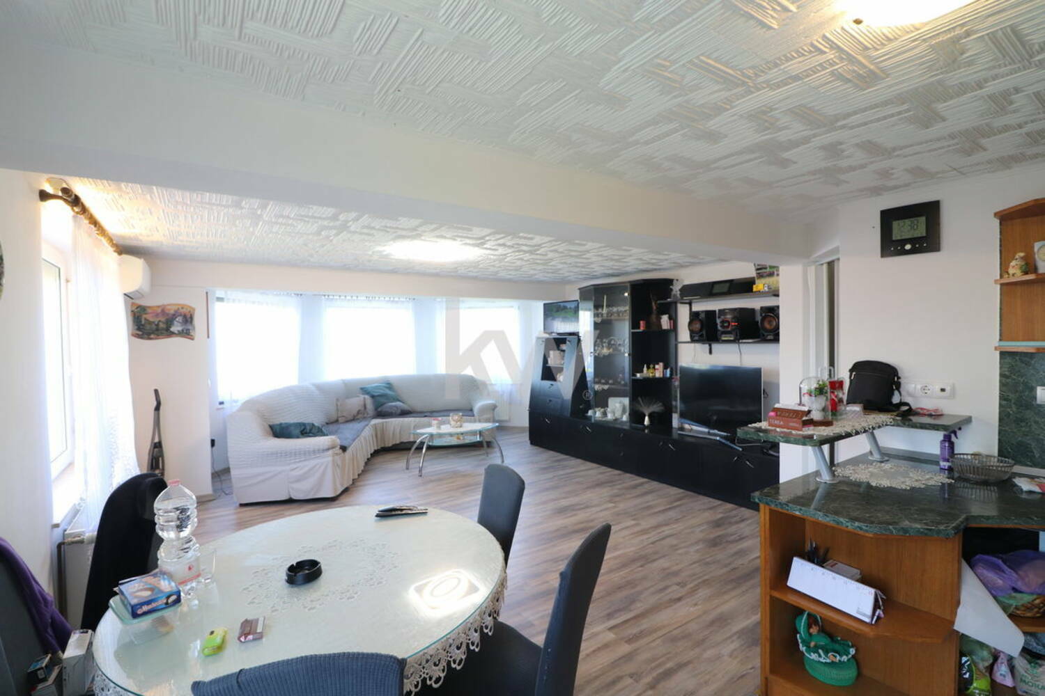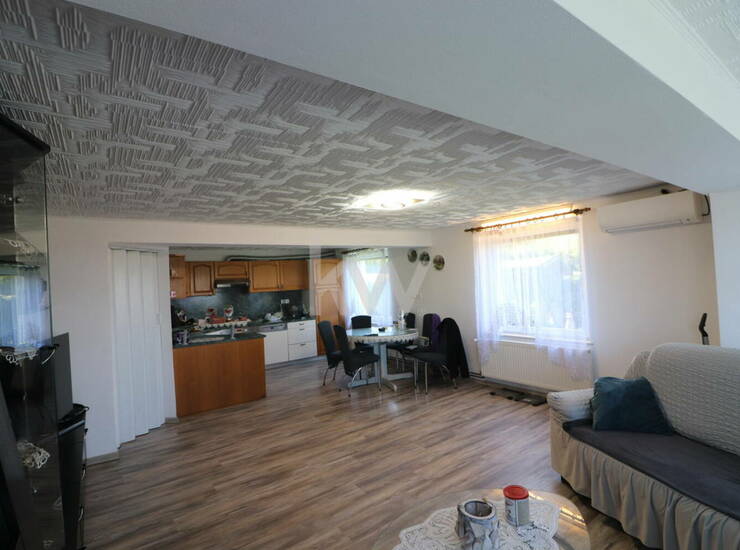 MANSARDA ZAJEMA: dnevni prostor s kuhinjo in jedilnico, kopalnica z tuš kabino in WC, otroška soba 1, otroška soba 2, spalnica