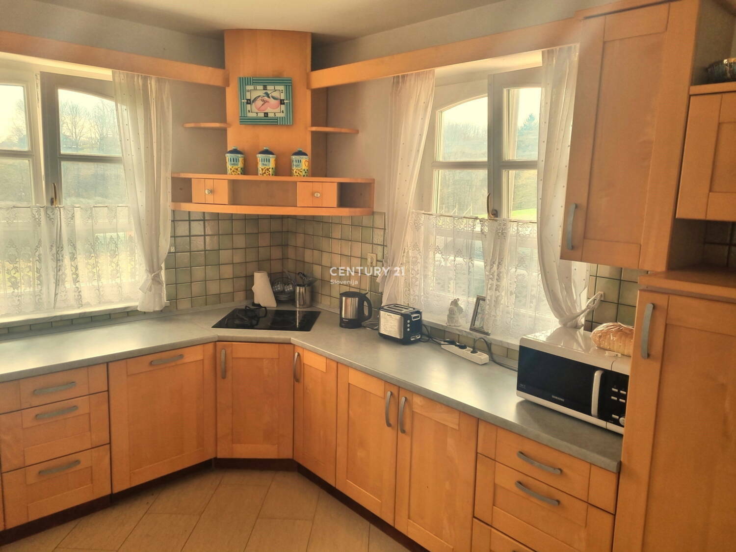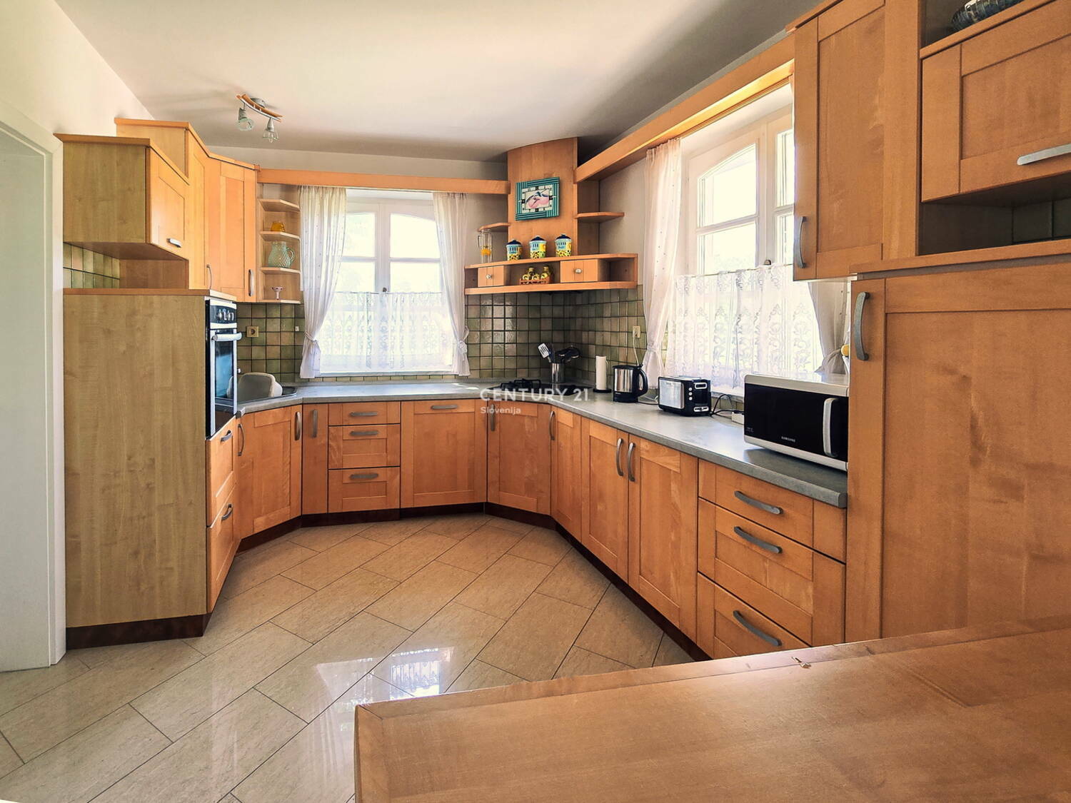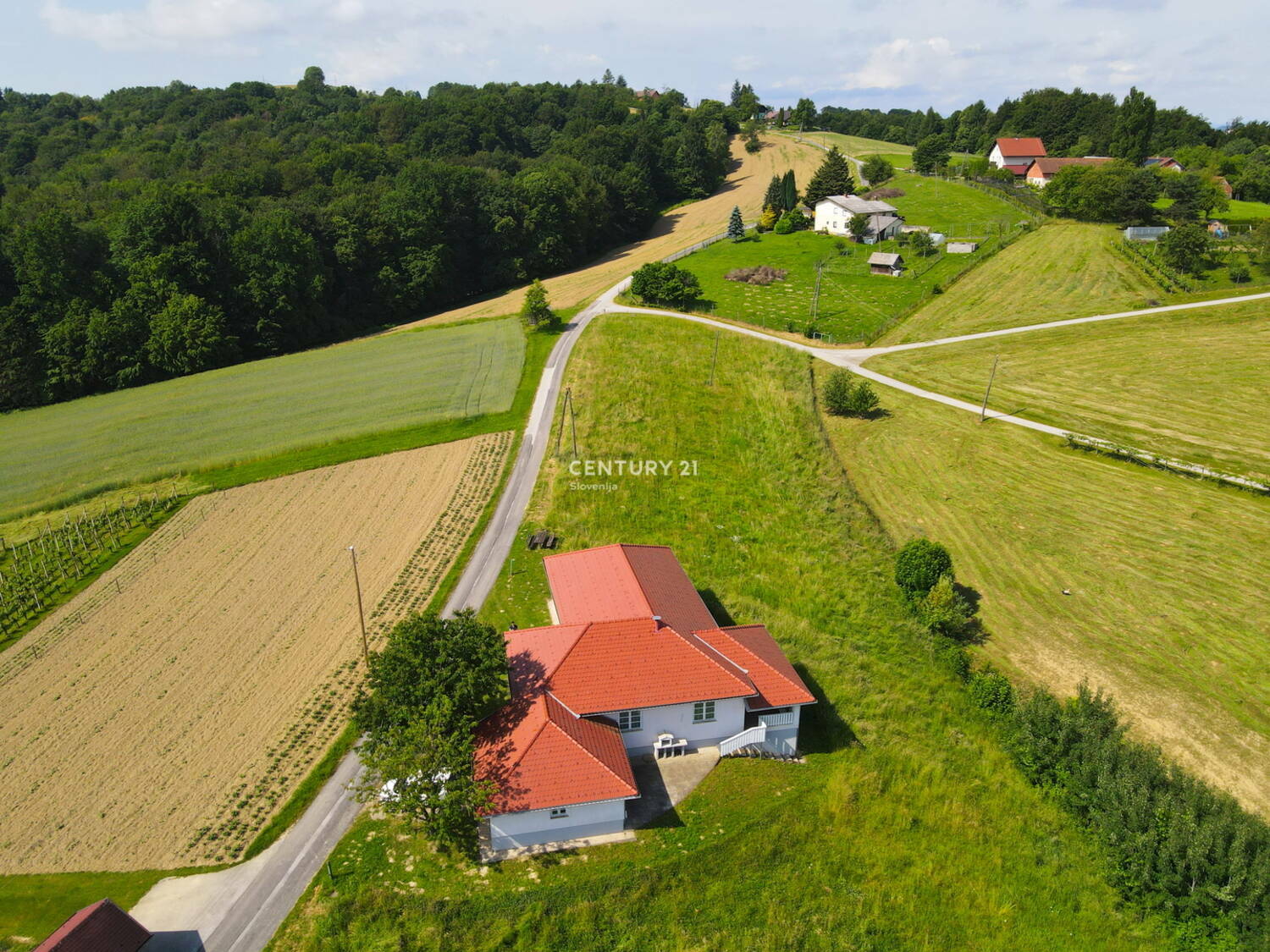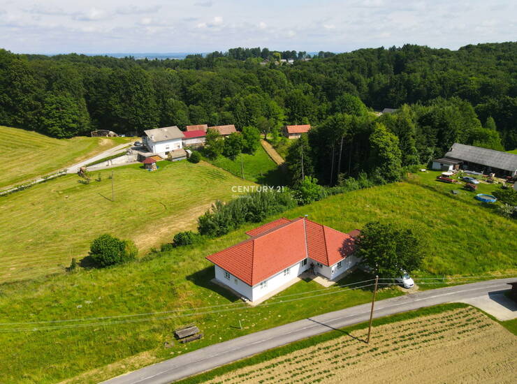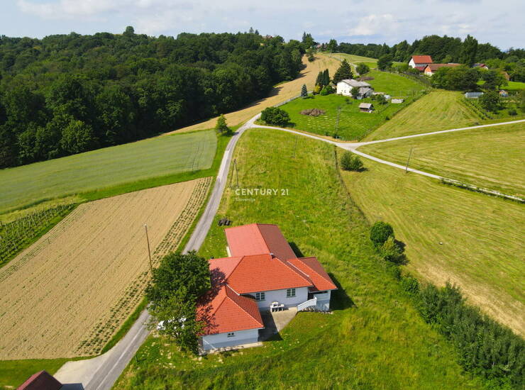 Prodamo:SVETLA , OPREMLJENA ATRIJSKA HIŠA Zgornja Velka, občina Šentilj Parcela na kateri je atrijska hiša, ki je predmet prodaje, je velikosti 1.998 m2 in je delno zazidljivo, delno kmetijsko zemljišče. Dodatno so še 3 parcele 4.574 m2, ki so opredeljene kot najboljše kmetijsko zemljišče. Skupaj je zemljišča 6.572 m2, ki ni ograjeno. Atrijska hiša je bila zgrajena 1998 na temeljih stare domačije. Leta 2006 popolnoma renovirna, opremljena. Od takrat je koriščena le občasno, cca. 2 meseca letno, saj živijo lastniki v tujini. Etažnost objekta je K ( 18m2) +P (189,7m2). Objekt je klasične opečne gradnje z AB temeljno ploščo in AB pasovni/protizmrzlinski temelji. Streha objekta je večkapna, opečna kritina rdeče barve. Konstrukcija ostrešja je lesena.Fasada Demit, 10cm. Talne obloge so keramika, kamen in parket v spalnih prostorih ( spalnica in 2 manjši povezani otroški sobi), stenske obloge opleski pastelnih barv. Prostorna kopalnica obsega tuš, bide in prostor za savno. V kopalnici je urejeno talno gretje. Wc je ločen. Svetel, velik dnevno bivalni prostor obsega kuhinjo, jedilnico , dnevno sobo s kaminom in izhodom na pokrito teraso in obsega 72m2. Iz kuhinje je dostop do tehničnega prostora s pečjo za ogrevanje( olje) in pralnice ter dalje do garaže. Klet je dostopna po zunanjem stopnišču . Priključki: elektrika, voda; TV , internet-optika; odpadne fekalne vode so speljane v vodotesno greznico, meteorne vode pa se preko peskolovov razpršeno razlivajo po terenu. Stavbno pohištvo je PVC, 3 slojna termopamn zasteklitev. Celotna oprema hiše ostaja v objektu, je višjega kakovostnega in cenovnega razreda, razvidna na fotografijah. Razdalje: Sladki vrh 3,5km; Šentilj 6,7 km Nepremičnina je vpisana v Zemljiško knjigo,brez bremen, Uporabno dovoljenje v zaključni fazi pridobivanja. Nepremičnina je tudi v odsotnosti lasnikov redno zračena , vzdrževana, sproti vsakoletno se opravljajo vsa redna vzdržavaln