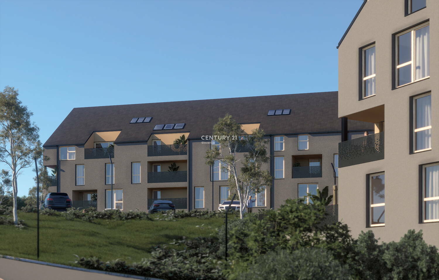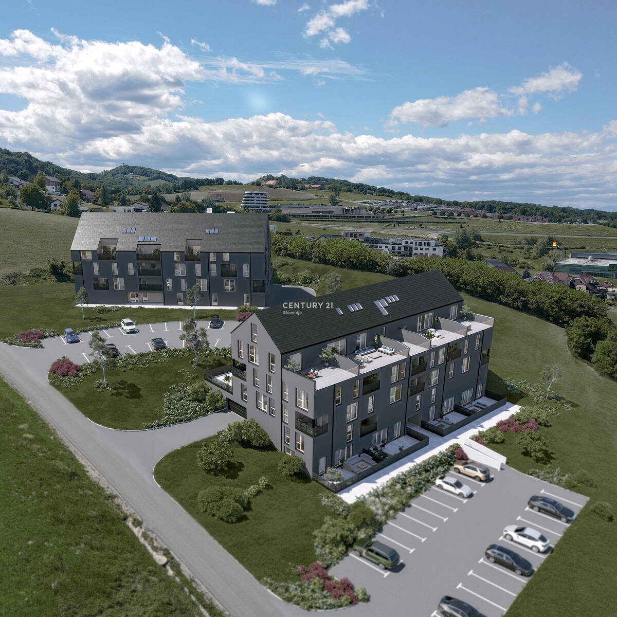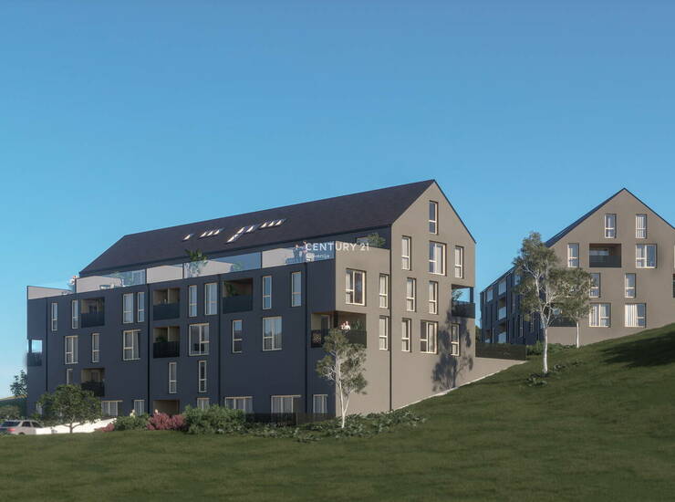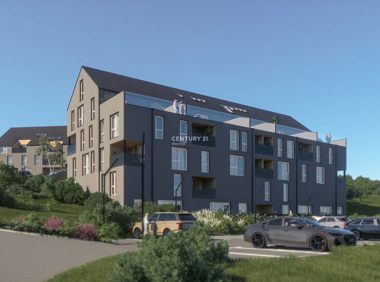 Enkratna priložnost za nakup atraktivnega 5,5 - sobnega stanovanja z veliko teraso v Šentilju - v neposredni bližini meje z R. Avstrijo. Stanovanje se nahaja v kraju Šentilj , slabih 15 km iz Maribora, ter ca. 700 m od mejnega prehoda Šentilj. Stanovanje v izmeri 195,34 m2 je komfortno zasnovano, energetsko učinkovito. Ponuja vam krasen razgled in visoko udobje bivanja. Na voljo je tudi dvigalo.. Šola, vrtec, pošta, trgovina, zdravnik, lekarna, veterinar, občina, kulturni dom, avtobusna v oddaljenosti maksimalno 400 m . Stanovanje ima veliko steklenih površin, dodaten bonus pa predstavljata loža in pokrito garažno mesto. Stavba bo imela: zidano oz. betonsko garažo - ostala 4. nadstropia + mansarda bodo v leseni MARLES izvedbi. Fasada bo kontaktna, po sistemu demit. Skupni prostori, hodniki in stopnišča bodo tlakovani z granitogresom, stene bodo barvane z notranjimi disperzijskimi barvami , stopniščna ramena so širine 120 cm, prostor pred dvigalom pa je globok 120 cm tako da je omogočen lažji dostop osebam z omejenim gibanjem. Stopnišča bodo opremljena z ustreznimi držali. Tlak v bivalnih in spalnih prostorih ter predprostorih bo dvoslojni hrastov parket oz. podobno. V kopalnicah bodo keramične ploščice znamke kot npr. MARCO CORONA. Notranje stene - vse nosilne obodne stene so z notranje strani glajene in beljene. Mavčno kartonske predelne stene so prav tako glajene in beljene. V mokrih prostorih bo položena keramika. Sanitarni elementi bodo umivalniki in tuš kabine z pripadajočimi armaturami kvalitete Villeroy and Boch oz. podobno. Sanitarne školjke z podometnim izplakovalnikom. Vsa zunanja okna stanovanj bodo smrekova lesena s troslojno zasteklitvijo (uW 0,87W/m2K), senčenje steklenihpovršin bo omogočeno z alu žaluzijami na električni pogon.Zunanje in notranje okenske police. Notranja vrata v stanovanjih bodo mizarske obdelave, kovinska kljuka, navadna ključavnica. Vrata v prostore brez na
