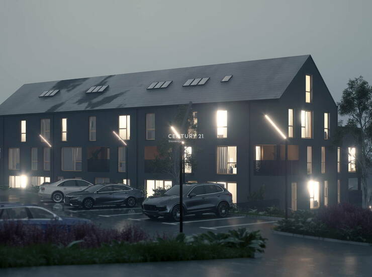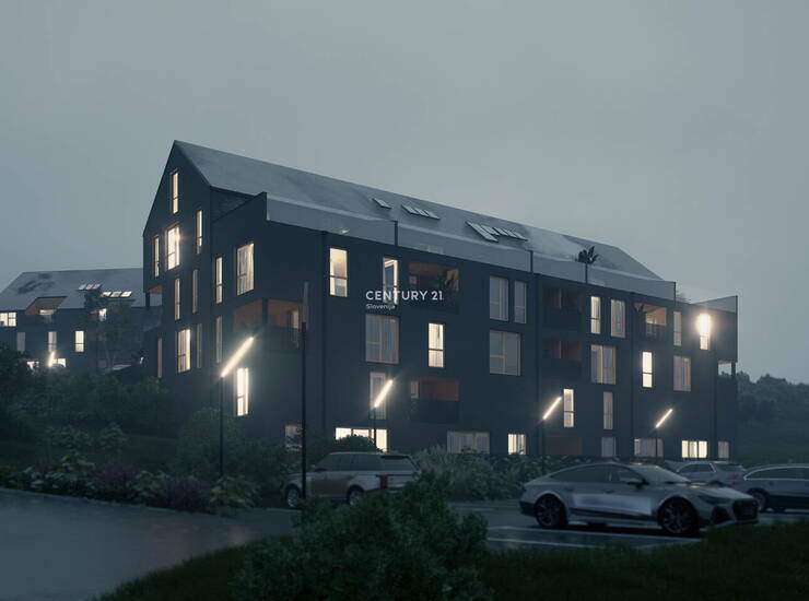 Enkratna priložnost za nakup zanimivega 2 - sobnega stanovanja z veliko teraso v Šentilju - v neposredni bližini meje z R. Avstrijo. Stanovanje se nahaja v kraju Šentilj , slabih 15 km iz Maribora, ter ca. 700 m od mejnega prehoda Šentilj. Stanovanje v izmeri 111,48 m2 je komfortno zasnovano, energetsko učinkovito. Ponuja vam krasen razgled in visoko udobje bivanja. Na voljo je tudi dvigalo.. Šola, vrtec, pošta, trgovina, zdravnik, lekarna, veterinar, občina, kulturni dom, avtobusna v oddaljenosti maksimalno 400 m . Stanovanje ima veliko steklenih površin, dodaten bonus pa predstavljata loža in pokrito garažno mesto. Stavba bo imela: zidano oz. betonsko garažo - ostala 4. nadstropia + mansarda bodo v leseni MARLES izvedbi. Fasada bo kontaktna, po sistemu demit. Ograje balkonov bodo kovinske. Skupni prostori, hodniki in stopnišča bodo tlakovani z granitogresom, stene bodo barvane z notranjimi disperzijskimi barvami , stopniščna ramena so širine 120 cm, prostor pred dvigalom pa je globok 120 cm tako da je omogočen lažji dostop osebam z omejenim gibanjem. Stopnišča bodo opremljena z ustreznimi držali. Tlak v bivalnih in spalnih prostorih ter predprostorih bo dvoslojni hrastov parket oz. podobno. V kopalnicah bodo keramične ploščice znamke kot npr. MARCO CORONA. Notranje stene - vse nosilne obodne stene so z notranje strani glajene in beljene. Mavčno kartonske predelne stene so prav tako glajene in beljene. V mokrih prostorih bo položena keramika. Sanitarni elementi bodo umivalniki in tuš kabine z pripadajočimi armaturami kvalitete Villeroy and Boch oz. podobno. Sanitarne školjke z podometnim izplakovalnikom. Vsa zunanja okna stanovanj bodo smrekova lesena s troslojno zasteklitvijo (uW 0,87W/m2K), senčenje steklenih površin bo omogočeno z alu žaluzijami na električni pogon. Zunanje in notranje okenske police. Notranja vrata v stanovanjih bodo mizarske obdelave, kovinska kljuka, navadna ključ