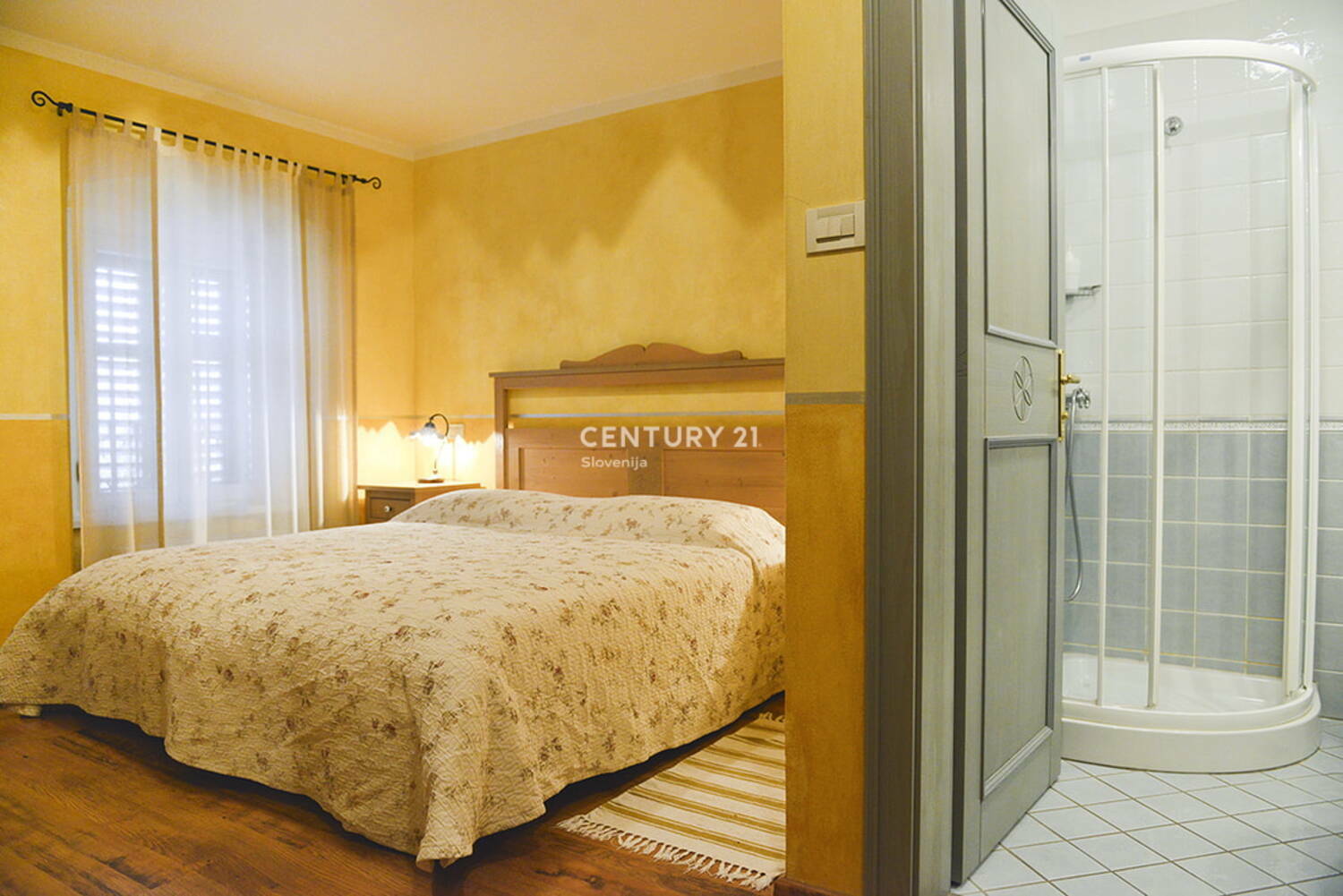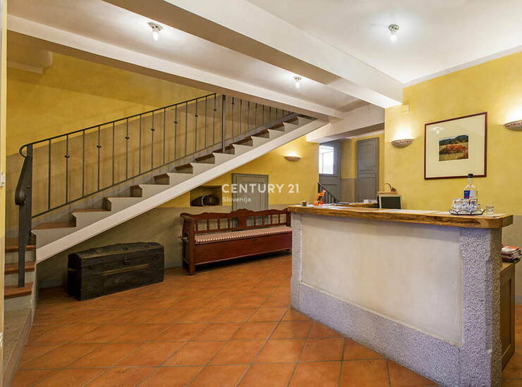 Prodamo poslovno stanovanjsko hišo s prostornim zemljiščem na Krasu Prilagojena je gostinsko nastanitveni dejavnosti z veliko zunanjo zelenico in vrtom ter prostornim parkiriščem za goste. Poleg glavne hiše stoji manjša enostanovanjska stavba (137 m2) in vse skupaj zajema površino 6.800 m2. Kraška tradicionalna hiša ponuja na 550 m2 uporabne površine, 7 prostornih sob s toaletnimi prostori, opremljenih v rustikalnem slogu s skrbno izbranim pohištvom in z visoko dodano vrednostjo. Vsaka soba ima balkon s pogledom na kraško podeželje. Gostinski prostori se nahajajo v pritličju. Znotraj so trije ločeni prostori (72 sedežev) z izhodom na veliko zunanjo teraso (60 sedežev) ter skrbno vzdrževana kuhinja. Vsi prostori so grajeni po standardih in se prodajajo z vso pripadajočo opremo. Gostilna je znana po sezonski ponudbi jedi iz domačega okolja in gosti veliko tujih in domačih gostov. Nakup je primeren za bivanje in ponuja več možnosti širitve povezanih dejavnosti. Oddaljena je 5 km do avtocestnega priključka in 20 km do morja. Za več informacij in ogled, me pokličite.