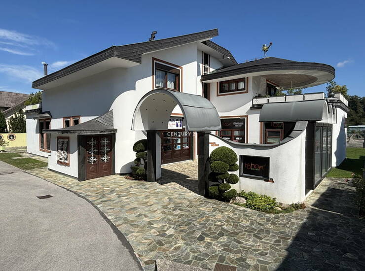 Predstavljamo vam poslovno-stanovanjsko hišo s skupno površino 780 m2, ki se nahaja v Slovenj Gradcu. Lokacija omogoča hiter dostop do različnih storitev, šol in povezav, obenem pa nudi bližino narave ter izjemno sončno lego, kar je posebej primerno za tiste, ki iščejo optimalno ravnovesje med delom in prostim časom. Stavba je grajena z visokokakovostnimi grabenimi elementi ter v skladu z protipotresnimi zahtevami. Hiša obsega štiri spalnice in ponuja izjemno funkcionalno razporeditev prostorov, ki je primerna tako za večje družine kot tudi za poslovneže. Med glavnimi prostori izstopata dve večji pisarni (100 m2 in 95,7 m2), ki omogočata ločene delovne ali bivalne enote. Dodatno udobje zagotavljajo prostorna terasa s 74,2 m2, balkon, atrij ter shramba in klet, ki poskrbita za dovolj prostora za shranjevanje. Na voljo je več uporabnih dodatkov, med njimi pokrito parkirišče, garaža ter asfaltirana dovozna cesta, ki zagotavlja enostaven dostop do objekta. Hiša je opremljena s sodobnimi rešitvami na področju ogrevanja, kot so toplotna črpalka, fotovoltaika, talno gretje in kamin, kar doprinese k energetski učinkovitosti. Dodaten poudarek dajejo savna, lep razgled ter dizajnerski elementi, ki skupaj ustvarjajo prijetno in unikatno bivalno okolje. Velik vrt in parcela v izmeri 1.226 m2 omogočata prijetno bivanje na prostem in možnost za različne aktivnosti. Opremljenost hiše vključuje kuhinjo z aparati, pomivalni stroj, kopalno kad, posteljo ter pisalno mizo, kar omogoča takojšnjo vselitev in udobno bivanje. Vabljeni k ogledu te posebne hiše na odlični lokaciji v Slovenj Gradcu, ki združuje prostornost, funkcionalnost in številne prednosti za prijetno bivanje ali poslovno dejavnost.