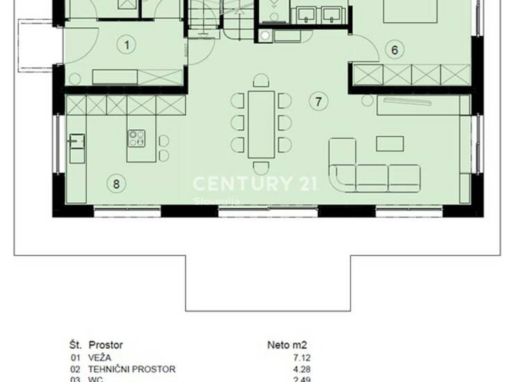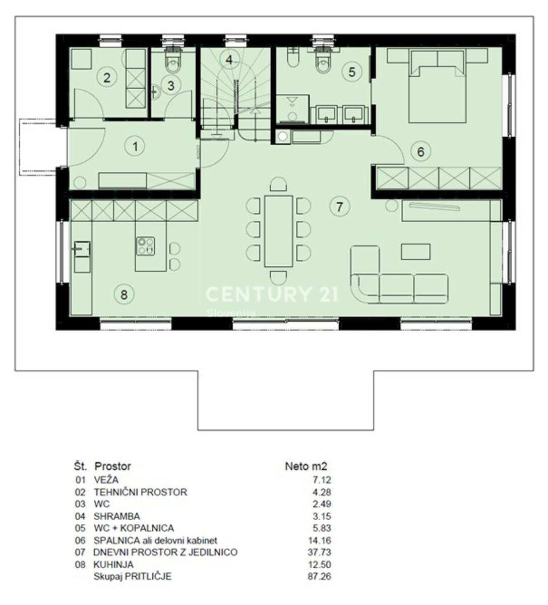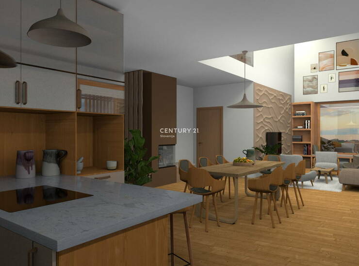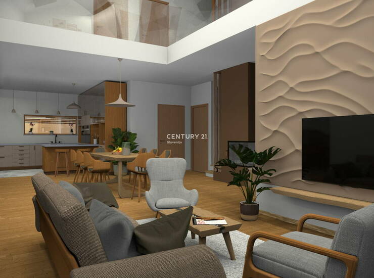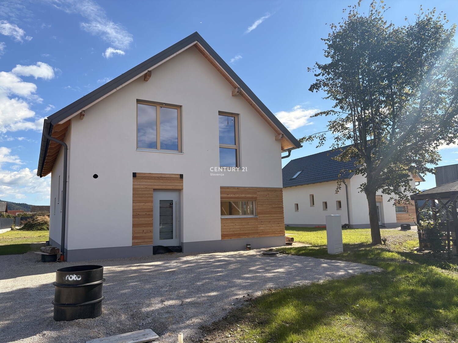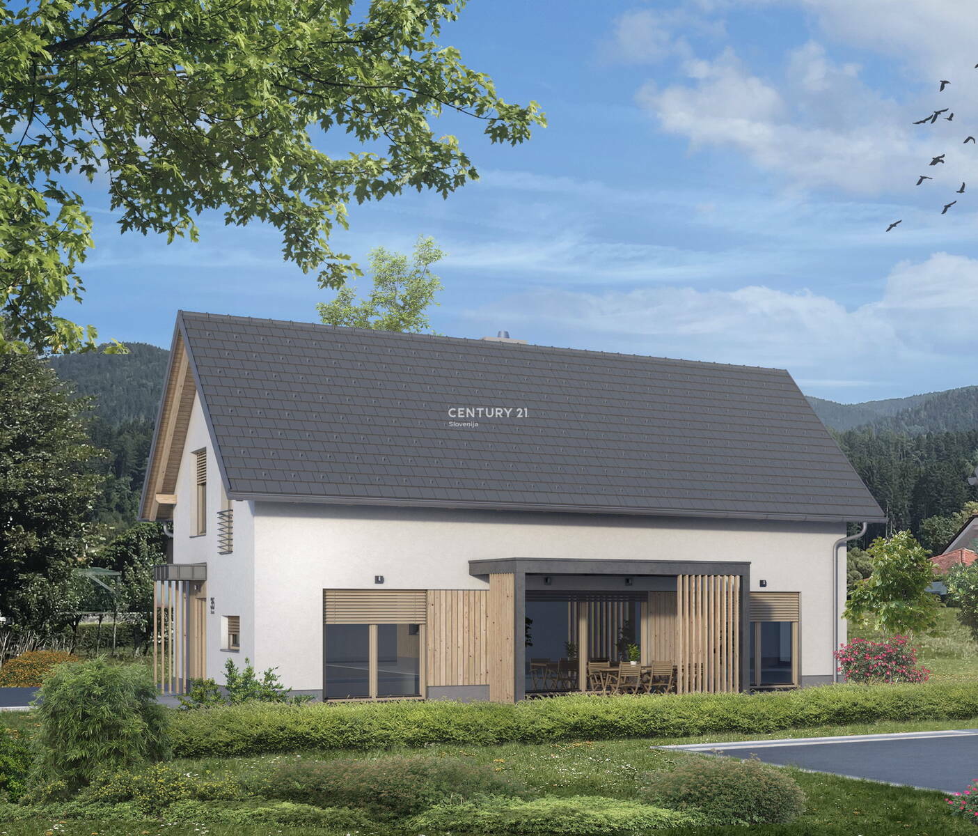 V prijetnem okolju Šmartna pri Slovenj Gradcu posredujemo pri prodaji dveh samostojnih stanovanjskih hiš v tretji podaljšani gradbeni fazi, ki čakata, da jih oblikujete po svojih željah in potrebah. Hiši, ki sta skoraj nič energijski, predstavljata prijetno ravnovesje med bližino trgovine, okulista, pošte za vsakodnevne opravke, vrtca (50 m), osnovne šole (150 m), bližino centra Slovenj Gradca (2 km) in umeščenostjo v naravo. Dodatna prednost lokacije je tudi bodoči priključek na hitro cesto, ki bo oddaljen le 800 metrov. Ponujata prijeten dom za družine, ki jim je mar, v kakšnem okolju živijo, zato so investitorji pri gradnji uporabili naravne materiale – masivno leseno konstrukcijo iz križno lepljenih elementov. Med prednostmi gradnje velja izpostaviti leseno stavbno pohištvo, izolacijo iz kamene volne ter silikatni zaključni sloj, ki omogoča, da hiša diha in ustvarja zdravo bivalno okolje. Tudi pri zunanjosti so upoštevali skladnost in harmonično uporabo barv ter teksture lesa, kar ustvarja vizualno prijetne hiše, v katerih je veselje živeti. Sodobno načrtovani hiši s 154 m2 uporabne površine ponujata vse, kar potrebujete za udobno ustvarjanje spominov v vašem novem domu. Vhodna vrata se odpirajo v prostorno garderobo, sledi WC za goste, tehnični prostor, stopnišče in dnevni prostor, ki organsko prepleta kuhinjo, jedilnico in dnevno sobo. Spodaj se nahaja tudi spalnica s kopalnico. V hišo se preliva ogromno dnevne svetlobe v vsakem delu dneva, električne žaluzije pa omogočajo zatemnitev in senčenje v poletnih dneh. V zgornjem nadstropju sta dve otroški sobi, kopalnica in kabinet oziroma dodatna otroška soba. Galerija vam omogoča občutek povezanosti hiše in večjo možnost, da vsi člani družine pravočasno zaznajo večerjo na mizi. Hišo objema 729 m2 veliko zemljišče, na katerem že zeleni trava in ponuja veliko možnosti za individualno ureditev vrta, otroškega igrišča ter prostora za vsakod