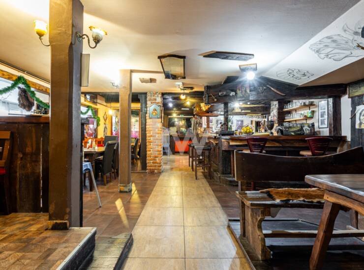 Razporeditev prostorov: Celotno poslovanje se odvija v pritličju, kjer je točilni pult, gostinski del z mizami, zastekljen zimski vrt, pripravljalnica pizz, kuhinja, sanitarije in zunanja letna terasa. V mansardi je garderobni del za zaposlene, 2 pisarni,del skladišča. Lahko pa ta del uporabite za različne namembnosti.