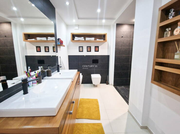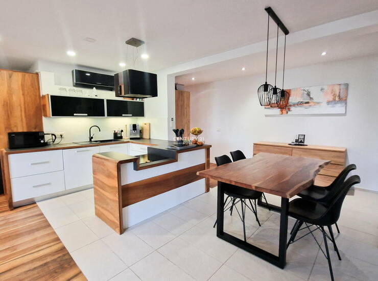 Na izjemni in mirni lokaciji v Mislinjski Dobravi je na voljo prostorno 2-sobno stanovanje v pritličju večstanovanjskega objekta, zgrajenega leta 2004. Stanovanje odlikuje odlična razporeditev prostorov in funkcionalna zasnova, primerna za mlade pare, manjše družine ali starejše pare, ki iščejo udobno in varno bivanje v neposredni bližini narave. Površina in tloris: Stanovanje obsega skupno 99,8 m2 uporabne površine, kar zagotavlja odprt in zračen bivalni prostor. Prostori so svetli in orientirani proti zahodu, kar omogoča prijetno naravno osvetlitev skozi ves dan. Stanovanje ima eno spalnico, kar je idealno za par ali posameznika, ki ceni večje bivalne površine. Posebnosti in prednosti: Ena izmed najpomembnejših prednosti tega stanovanja sta zelenica in prostorna terasa, ki omogoča prijetno bivanje na prostem in obilo možnosti za sprostitev ter druženje. Zaradi pritlične lege je terasa še posebej dostopna in funkcionalna, predstavlja pa tudi podaljšek bivalnih prostorov in poveča kakovost bivanja. Parcela, ki pripada stanovanju meri 222 m2 Oprema in udobje: Stanovanje je v letu 2015 doživelo prenovo, ki je še dodatno dvignila bivalni standard. Opremljeno je s kuhinjo z vsemi aparati, pomivalnim strojem in pralnim strojem, kar omogoča takojšnjo vselitev brez dodatnih vlaganj. Ogrevanje je urejeno preko toplotne črpalke (kupljene leta 2024), ki zagotavlja energetsko učinkovitost in nižje stroške ogrevanja. V dnevnem prostoru je tudi kamin na drva. Dodatne prednosti: Stanovanju pripada garaža, ki omogoča varno parkiranje, dodatno pa je na voljo tudi parkirišče za vaše vozilo. Lokacija v neposredni bližini narave in mirno okolje zagotavljata visoko kakovost bivanja, hkrati pa omogočata hiter dostop do vseh potrebnih urbanih storitev. Za več informacij ali dogovor za ogled vas vljudno vabimo, da nas kontaktirate.