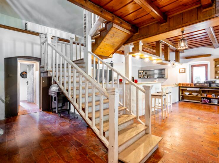 - OSNOVNA POSLOVNO/ STANOVANJSKA STAVBA: L. 1806, v letu 1995 (končano v letu 2001) je bila stavba popolnoma obnovljena ter opremljena v gostinski lokal (pridobljeno gradbeno dovoljenje). Neto tlorisna površina je 175,00 m2. Lokal je priključen na vsa potrebna infrastrukturna omrežja, in ima centralno ter lastno kotlovnico.