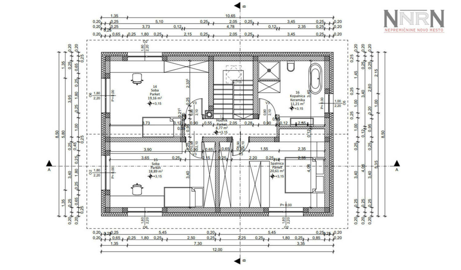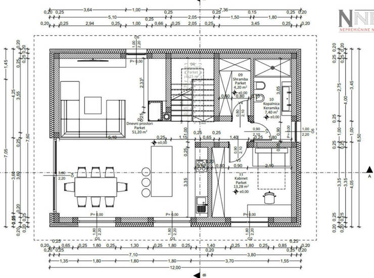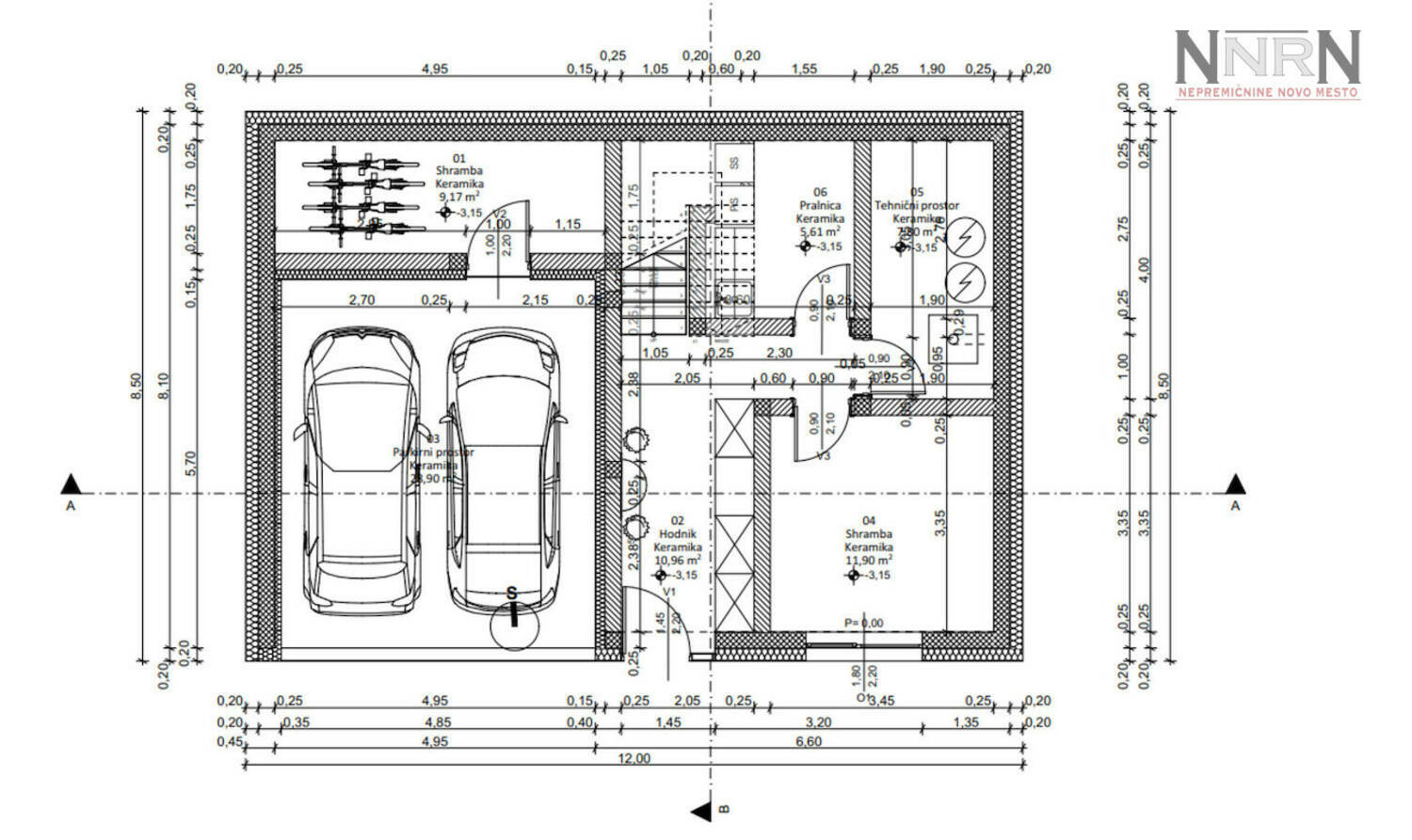 Klet: garaža, hodnik, dve shrambi, pralnica in tehnični prostor.