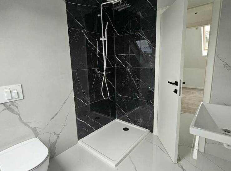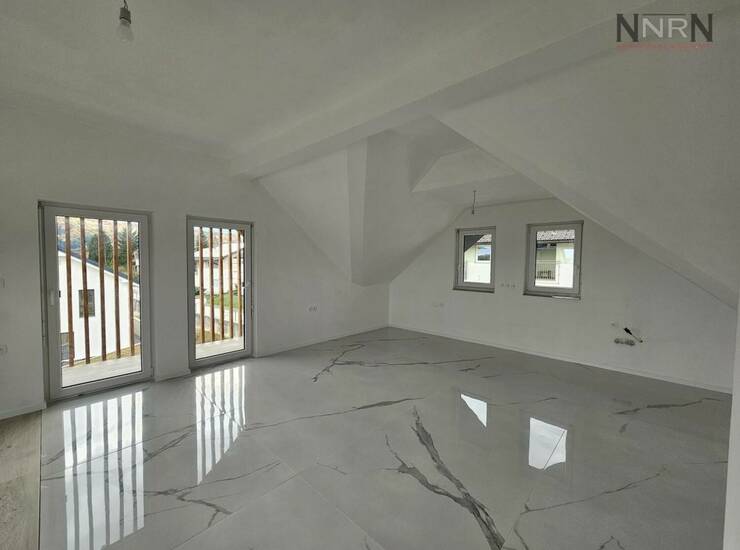 Stanovanjski enoti pripada atrij v izmeri 40m2, balkon v izmeri 5,3 m2 in dve lastniški parkirni mesti (okolica in parkirna mesta so v zadnji fazi urejanja).