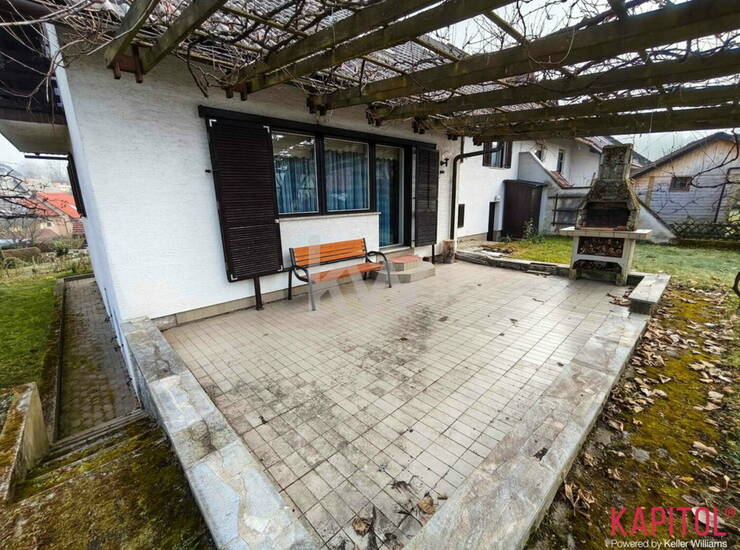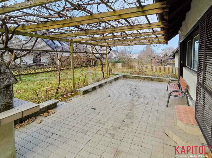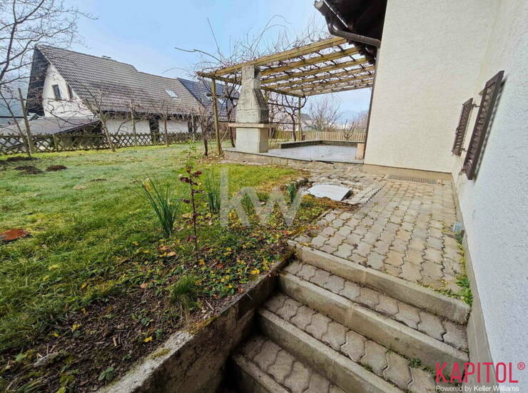 Čudovita zelenica s katero je povezan izhod na teraso iz dnevnega prostora je dodana vrednost te hiše.