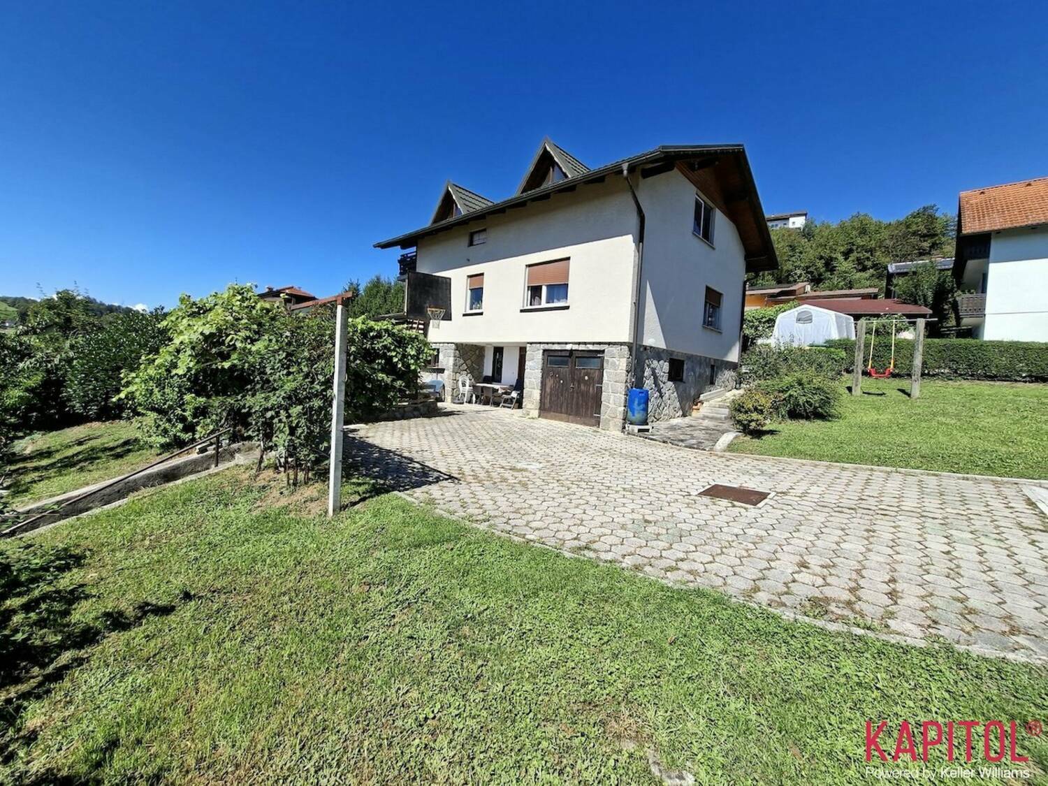 Že ob prihodu očara urejeno dvorišče z dovolj prostora za parkiranje več vozil, funkcionalna zasnova hiše pa omogoča tri ločene vhode in 3 bivalne enote, kar je odlična rešitev za večgeneracijsko bivanje ali investicijo.