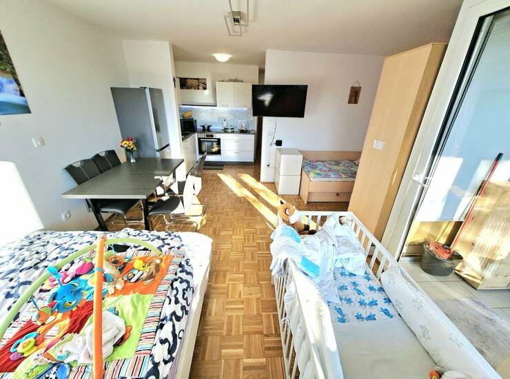 Stanovanje odlikuje sodobna zasnova in prijetna razporeditev prostorov, ki omogoča udobno bivanje posameznika ali para.