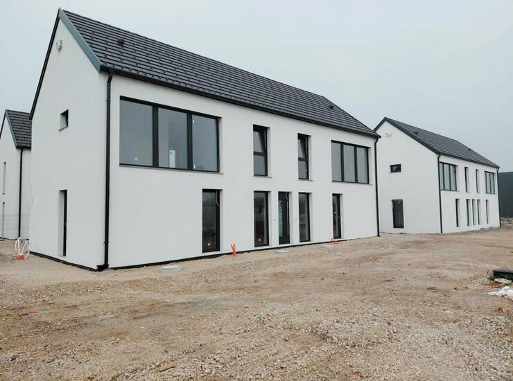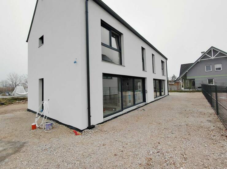 Na Sinji Gorici pri Vrhniki prodamo novo moderno stanovanjsko enoto v dvostanovanjski hiši (hiša dvojček), zasnovano za udobno družinsko bivanje v mirnem okolju narave, le 20 minut od Ljubljane. Enota je skoraj dokončana in se prodaja izdelana "na delni ključ", pri čemer je za finalizacijo potrebno dokončati še talne obloge (parket, keramika), sanitarno opremo, notranja vrata, vgraditi toplotno črpalko in sistem centralne rekuperacije (inštalacije že izvedene). Možnost izvedbe na ključ s strani investitorja, strošek cca 25.000 EUR.